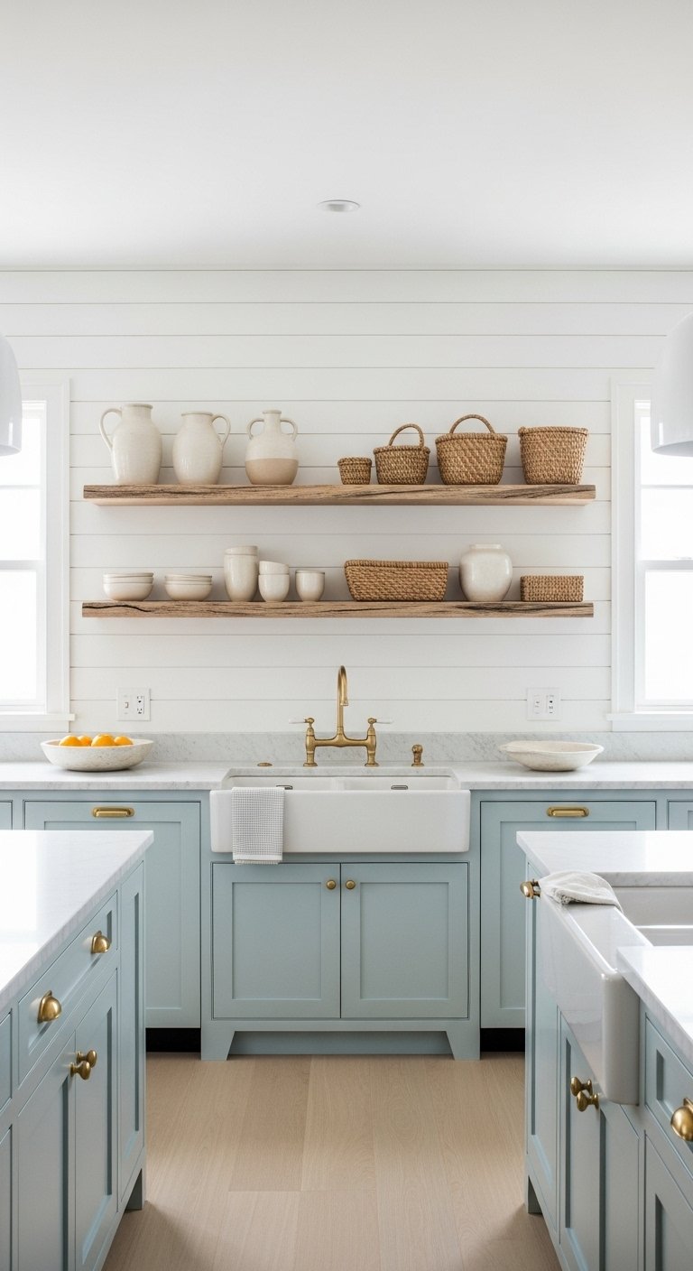 To get the look, focus on weathered wood finishes. A dining table made from bleached wood or driftwood-style open shelving sets the tone perfectly. Incorporate elements of sea glass or recycled glass in your lighting or backsplash for a touch of aquatic shimmer. Textures should be light and breezy; think cotton curtains that blow in the wind, light-colored wicker baskets, and perhaps a seagrass rug. This kitchen style feels like a deep breath of fresh ocean air.