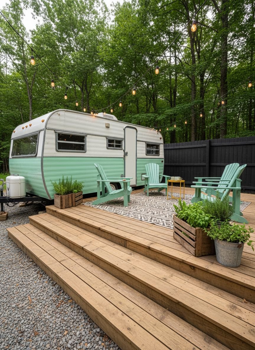 The design options expand with permanence. You add skirting around the base. The skirting hides the RV wheels. It insulates the underbelly. You integrate steps with proper rise and run. The stairs feel like a residential home. You stain the wood to match the campground trees. Cedar tones blend well. Redwood tones pop against green foliage.