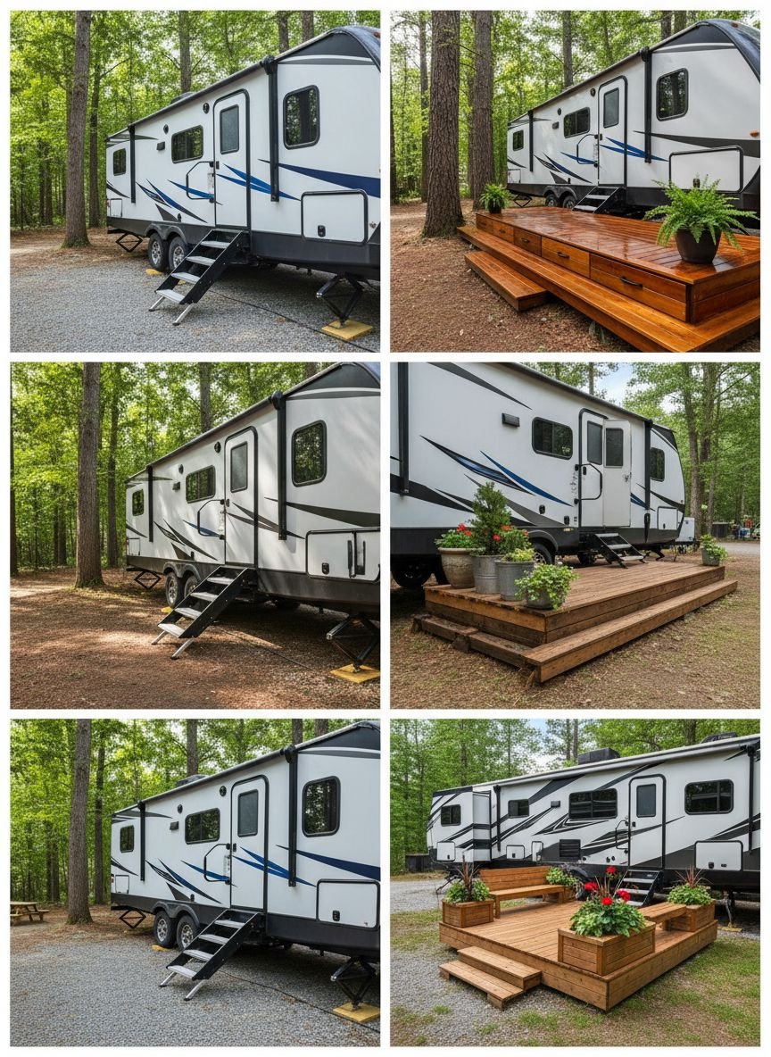 The space between the levels offers storage potential. You skirt the sides with lattice or horizontal slats. You install hinged doors. This hidden area houses your sewer hoses. It stores your camping chairs. It keeps your site looking tidy. The visual depth of a tiered deck adds architectural interest. It breaks up the boxy look of the trailer.