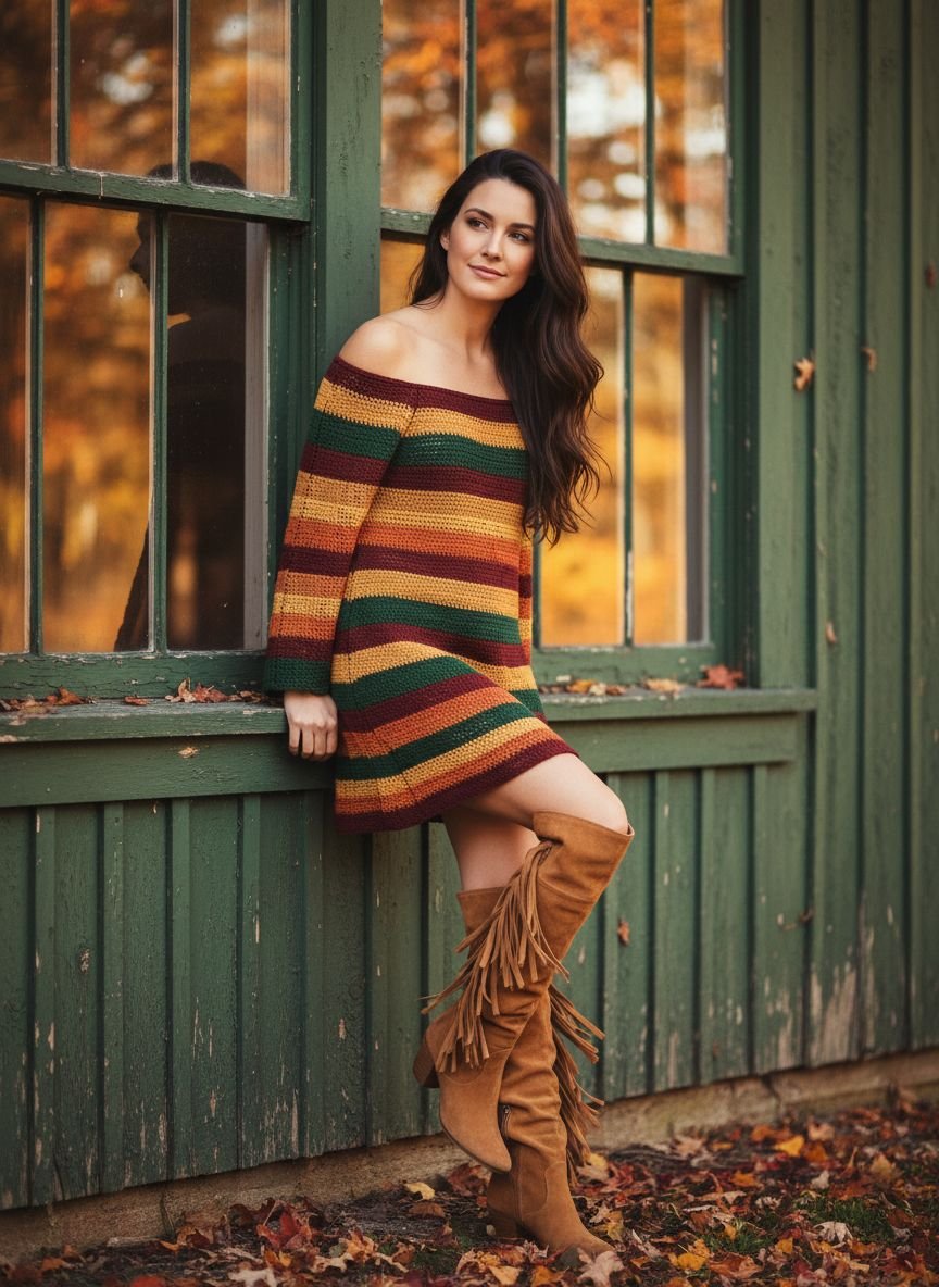 Turn your favorite sweater style into a full outfit with this sweater dress pattern. This is a massive trend for Fall 2026, pairing perfectly with knee-high boots and a wide-brim hat. The pattern simply extends the length of a standard oversized sweater, but often includes subtle hip shaping to prevent it from looking like a shapeless sack.