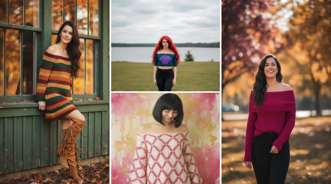 • Yarn Matters: For off-shoulder styles, lightweight yarns (DK or Sport weight) prevent the garment from becoming too heavy and dragging down the neckline.