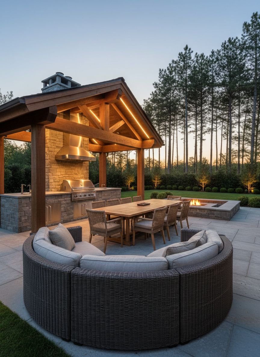 Creating a central hub for family interaction is the cornerstone of any successful backyard layout. An inviting gathering space usually centers around a durable, weather-resistant sectional sofa arranged in a “U” or “L” shape to encourage conversation. The key visual element here is the use of soft, outdoor-grade textiles in warm neutrals or earth tones, which bridge the gap between indoor comfort and outdoor durability. By anchoring this furniture on a defined hardscape, such as pavers or a composite deck, you establish a clear “living room” zone that feels intentional rather than temporary.