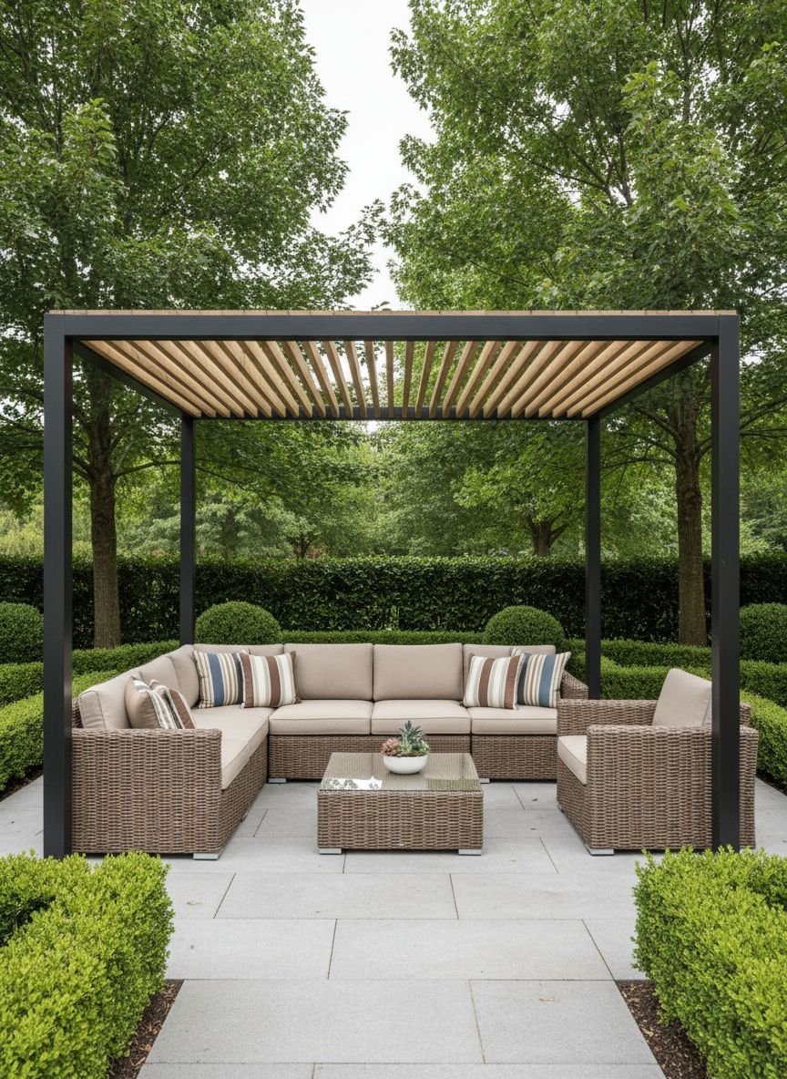 Pro Tip: Train climbing vines like Wisteria or Jasmine up the pergola posts to add fragrance and soften the structure’s hard lines.