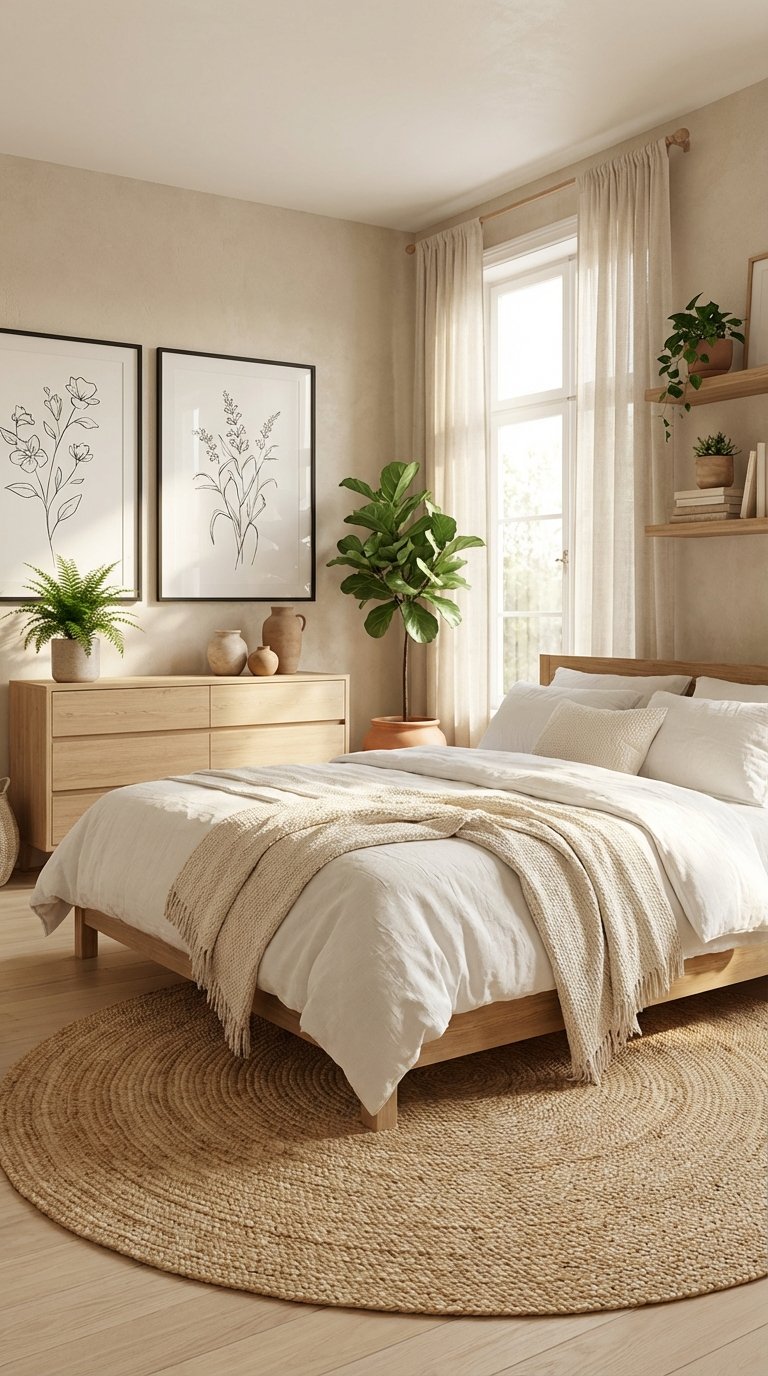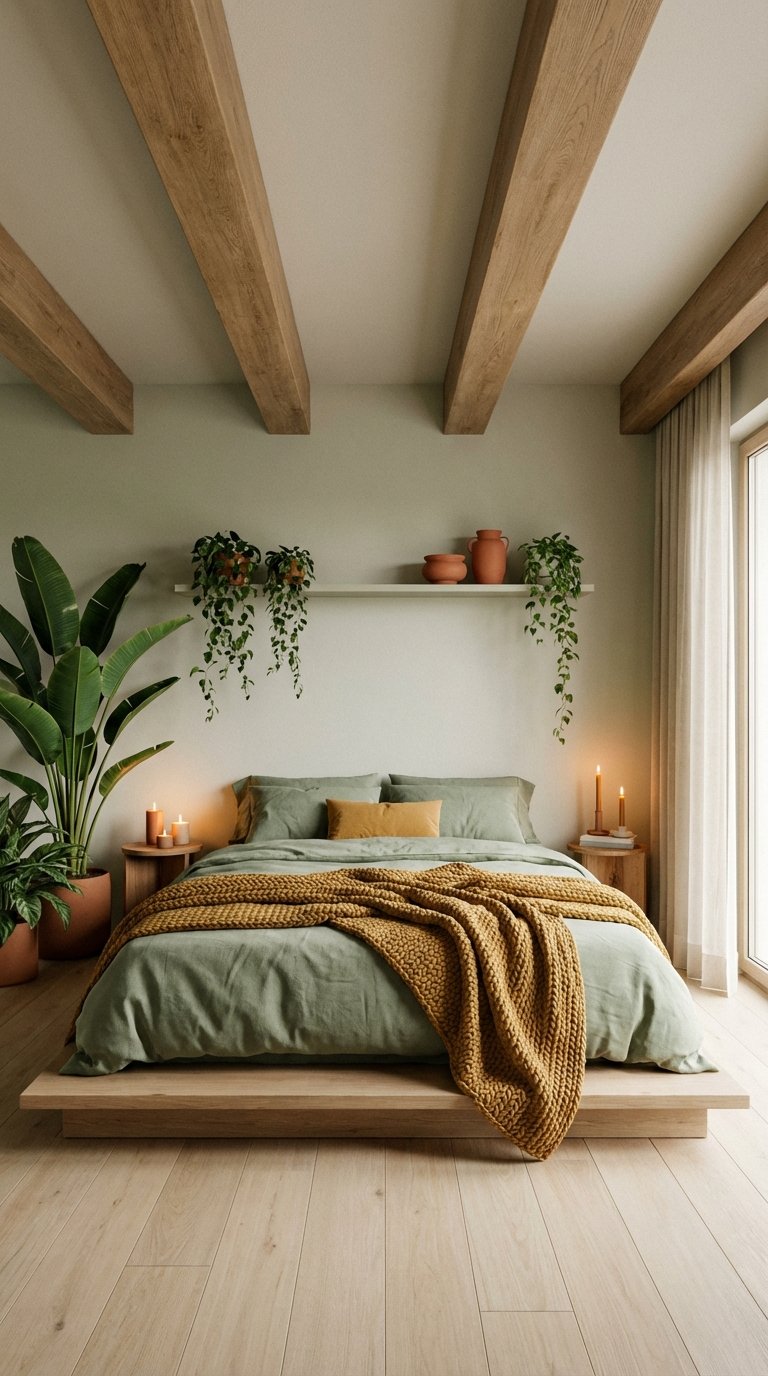 Upcycling is also huge in this niche. A vintage dresser painted in a chalky sage green or a distressed wood finish adds character that brand-new furniture lacks. Low-profile beds, often just a mattress on a pallet or a low wooden platform, are common because they emphasize the relaxed, grounded nature of the style.