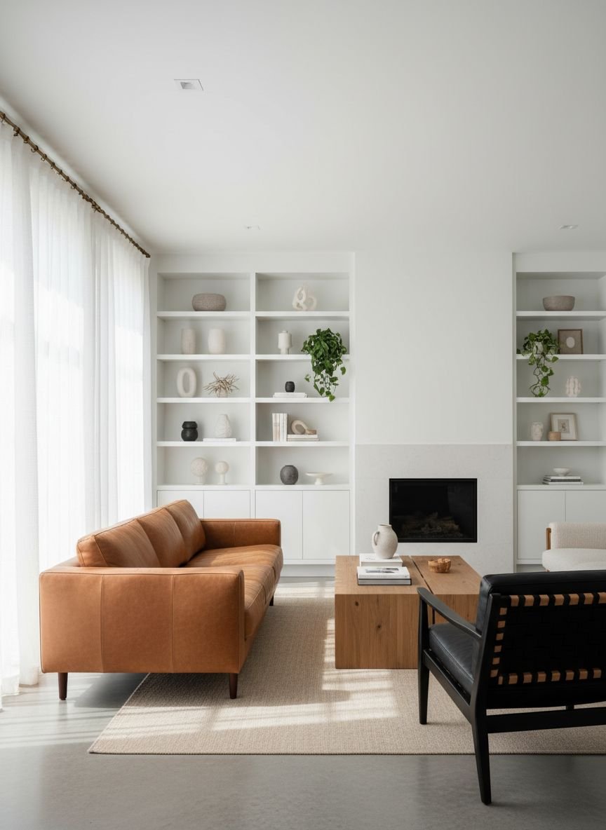 Minimalism is the art of editing. It is not about living in an empty box; it is about keeping only what is functional or beautiful. In a modern living room, clutter is the enemy. Surfaces should remain mostly clear. Bookshelves should breathe, with empty space acting as a visual pause between objects. This approach reduces visual noise and lowers stress.