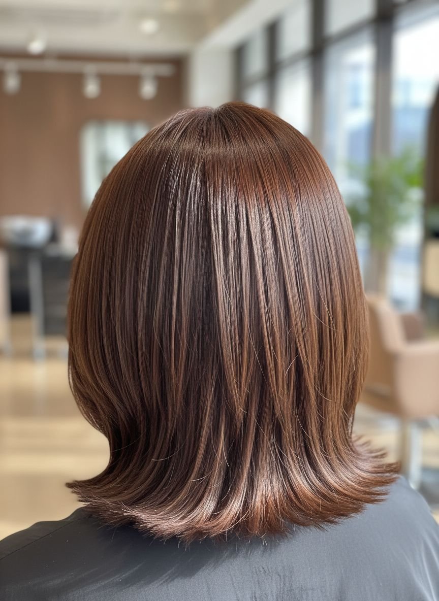 Visually, this cut relies on “invisible layers.” These are internal layers that remove bulk without creating visible steps or shelves in the hair. The result is a sleek surface that reflects light beautifully, making your hair look healthier and more hydrated. It is particularly effective for thick, straight hair that tends to puff up at this length.