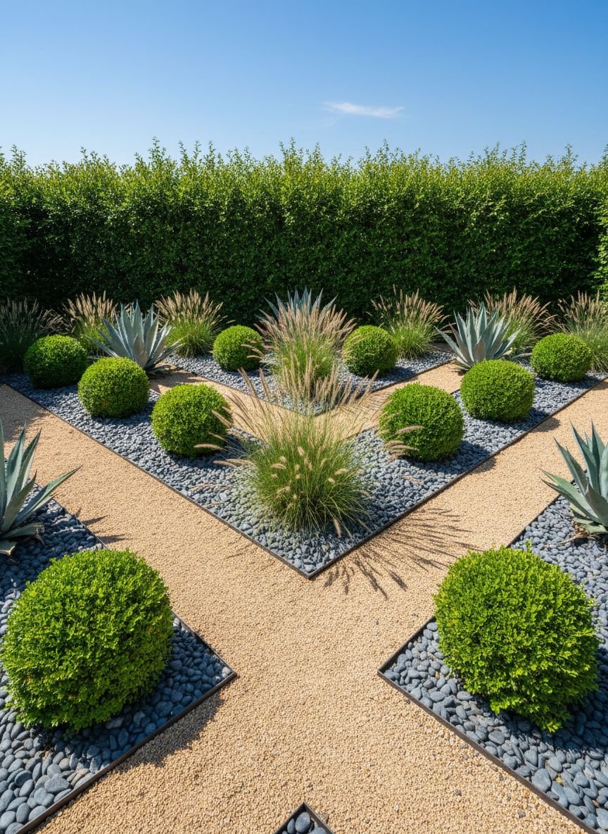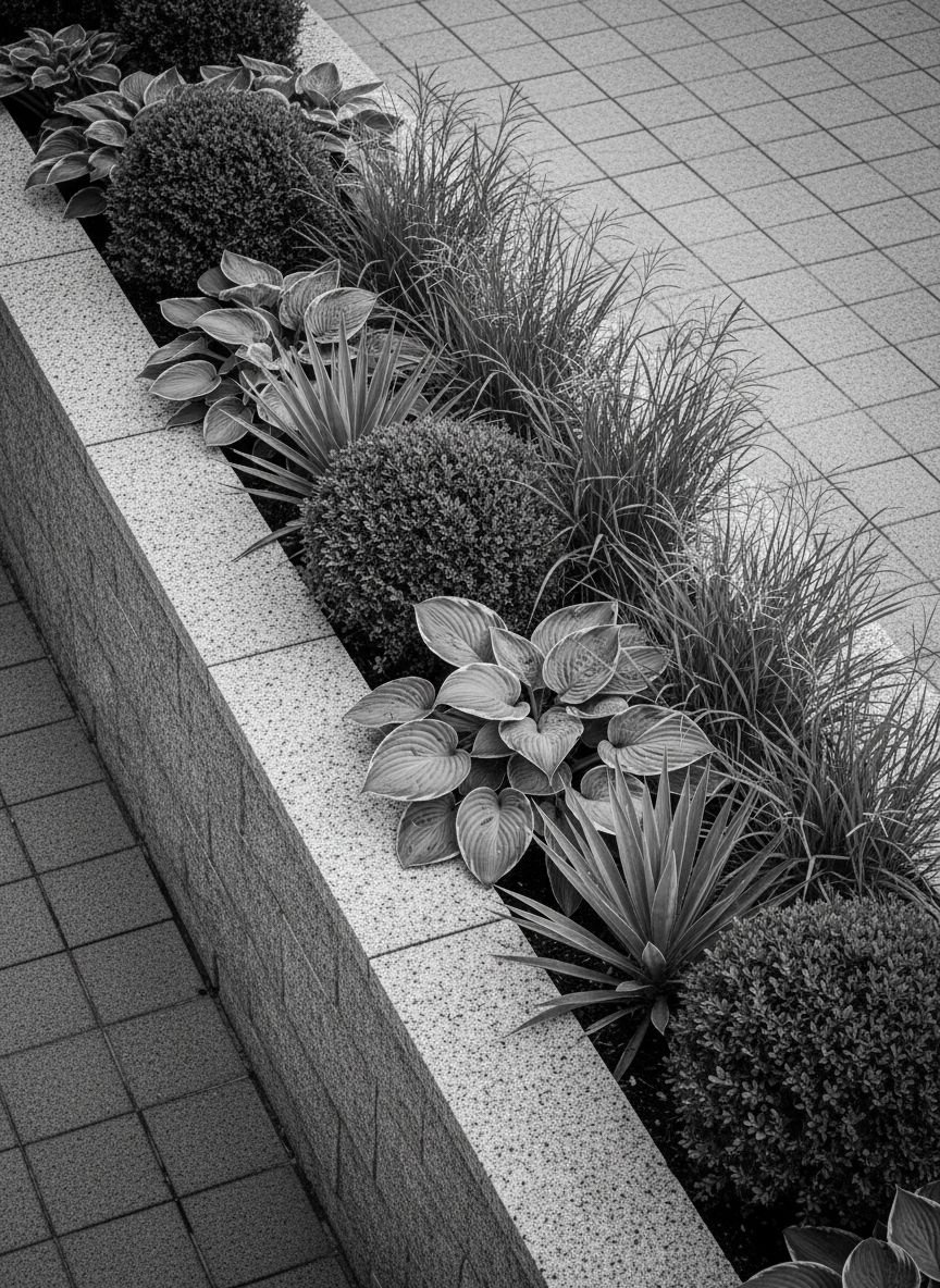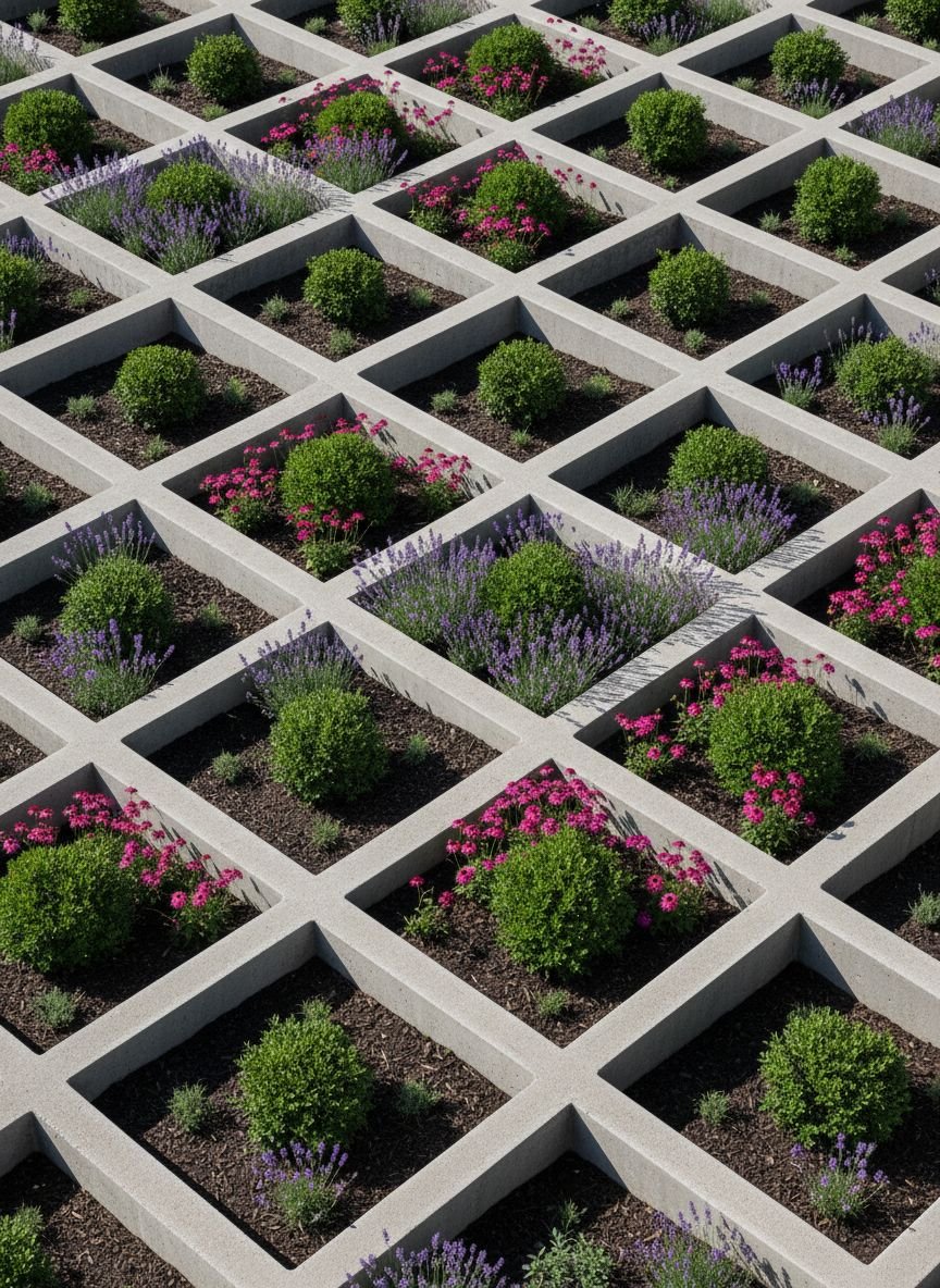 • Structure is King: Geometric lines and defined boundaries create the modern look more than specific flower choices.