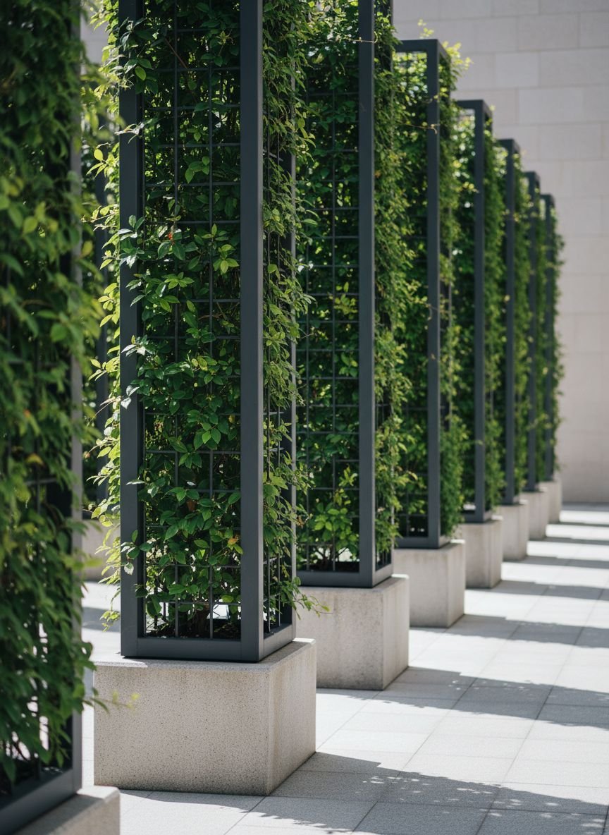 When ground space is limited, the only way is up. Vertical gardening is a smart solution for urban courtyards and balconies. A modern trellis creates a living wall that softens hard surfaces. Avoid flimsy plastic or rustic wooden lattice. Opt for sleek metal grids or tension wire systems. These structures are nearly invisible, allowing the vines to take center stage.