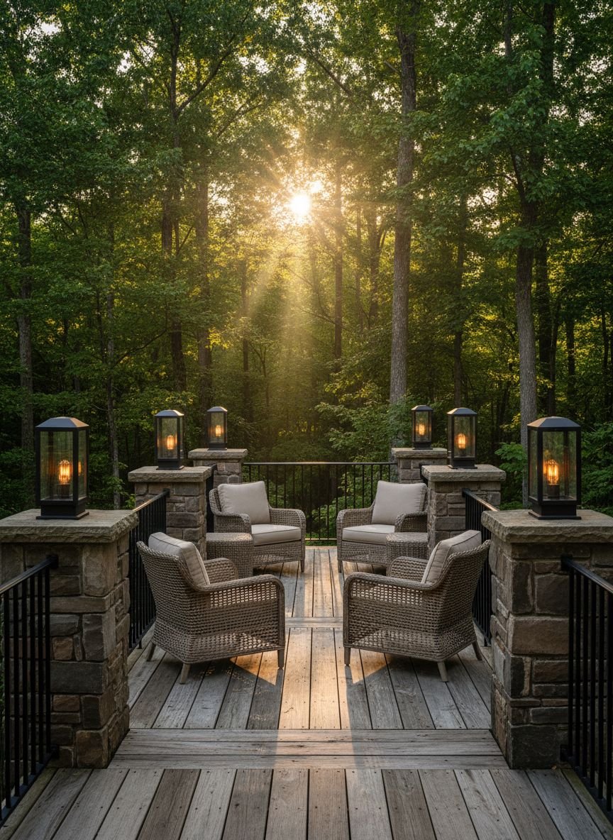 Stone veneer adds weight, permanence, and luxury to a deck wall. Applying stacked stone cladding to a retaining wall or a feature wall connected to the house anchors the outdoor space. The rough texture and natural color variations of slate, travertine, or limestone create a stunning backdrop for fire pits or water features. Unlike wood, stone does not fade or rot, making it a “one-and-done” investment.