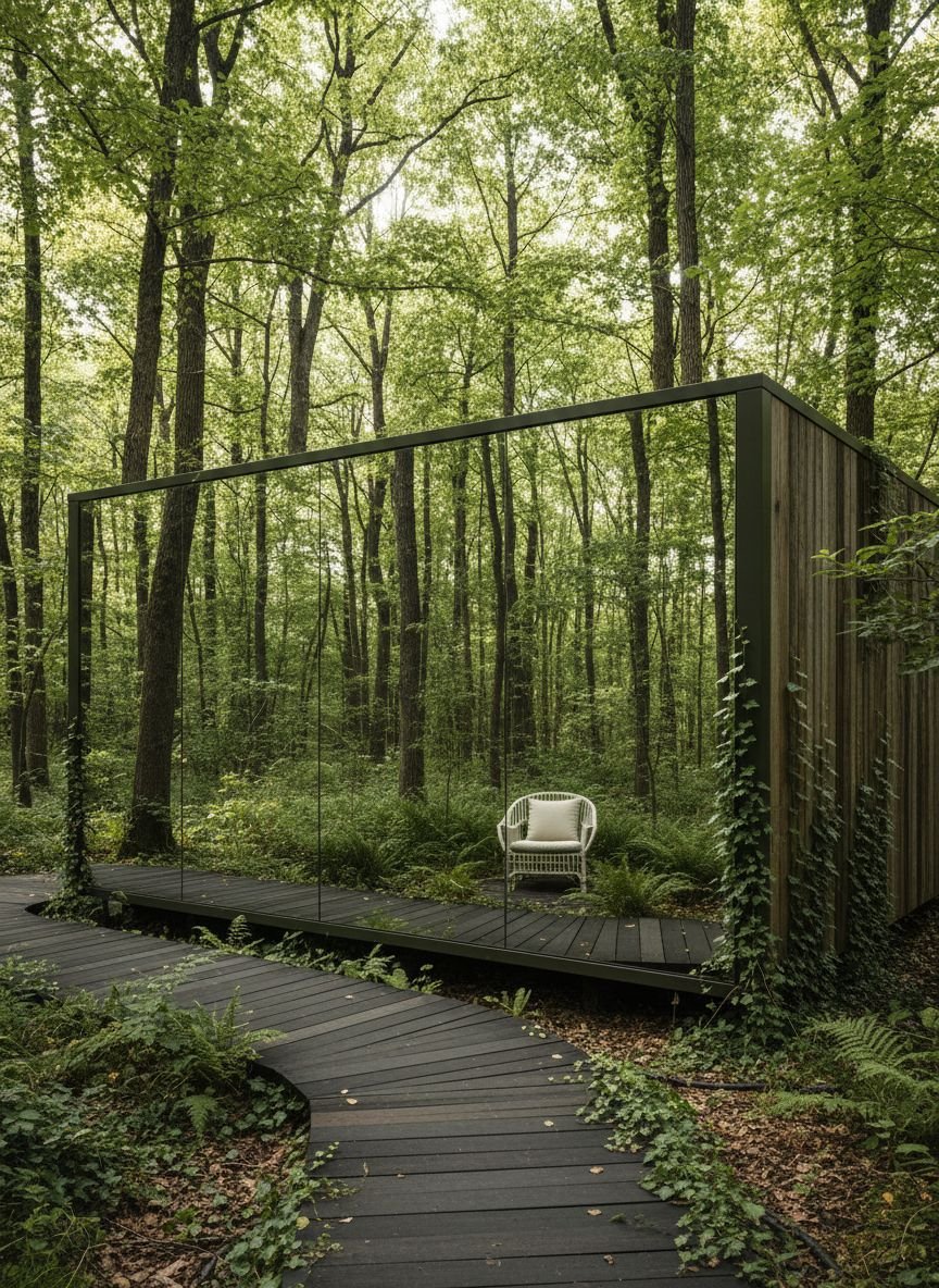 Outdoor mirrors are a magician’s trick for small decks, doubling the visual space and reflecting light into dark corners. Placing a mirror on a deck wall reflects the greenery of the garden, making the space feel surrounded by nature. You must use mirrors specifically designed for outdoor use or weatherproof standard mirrors by sealing the edges and backing to prevent de-silvering.
