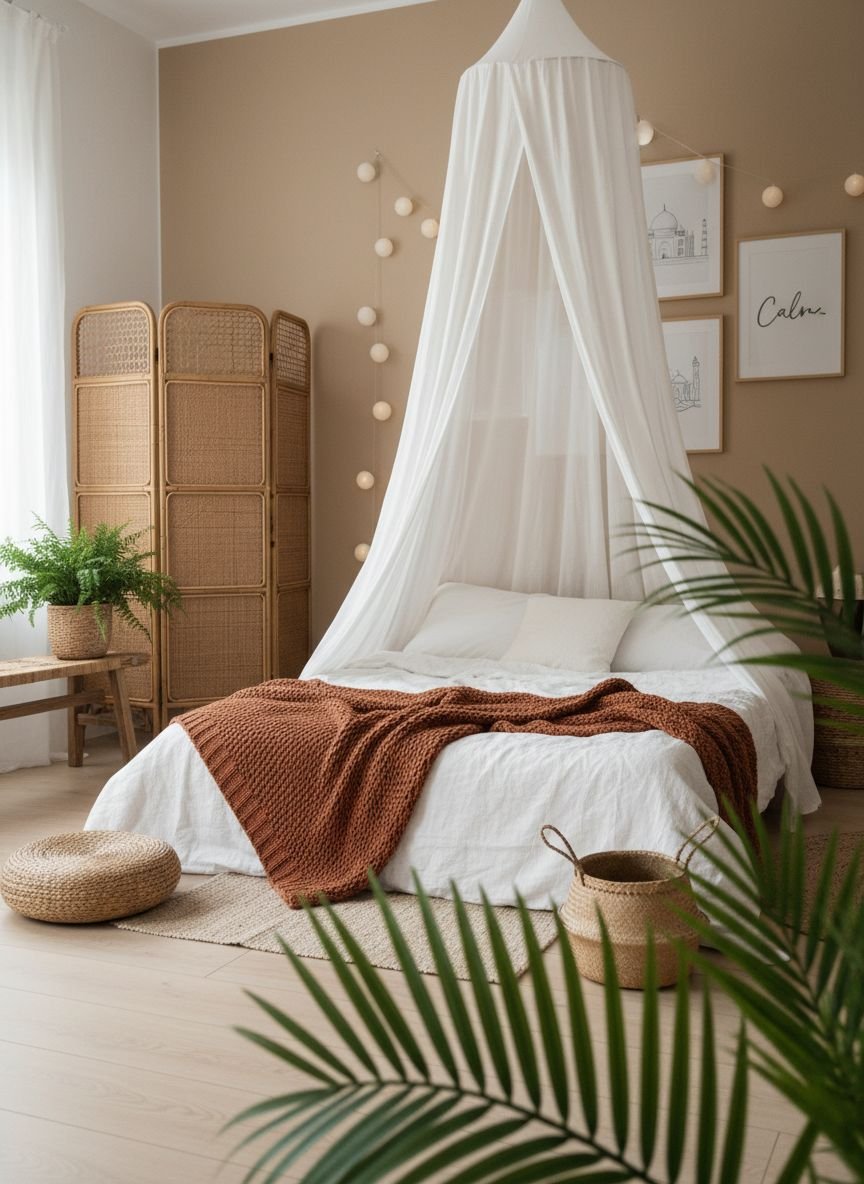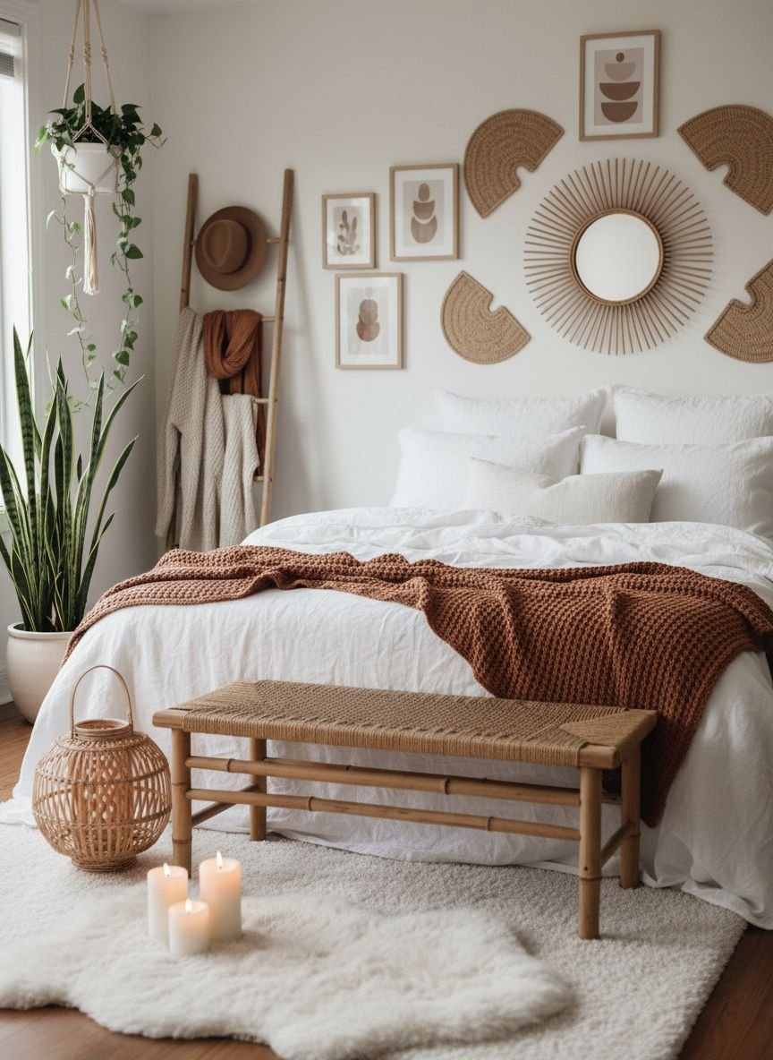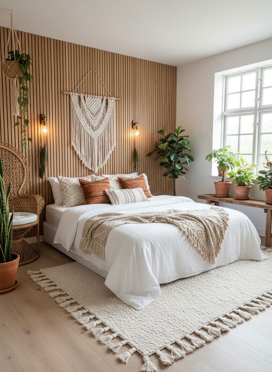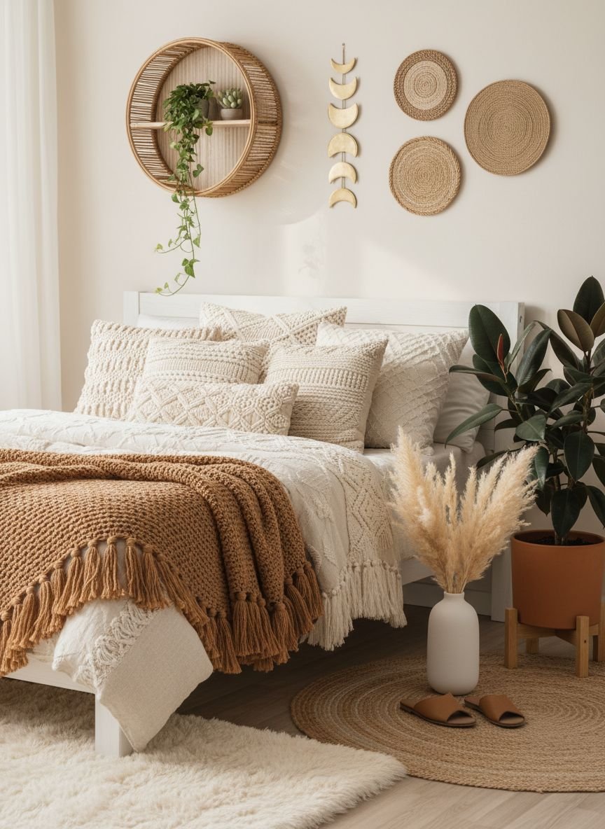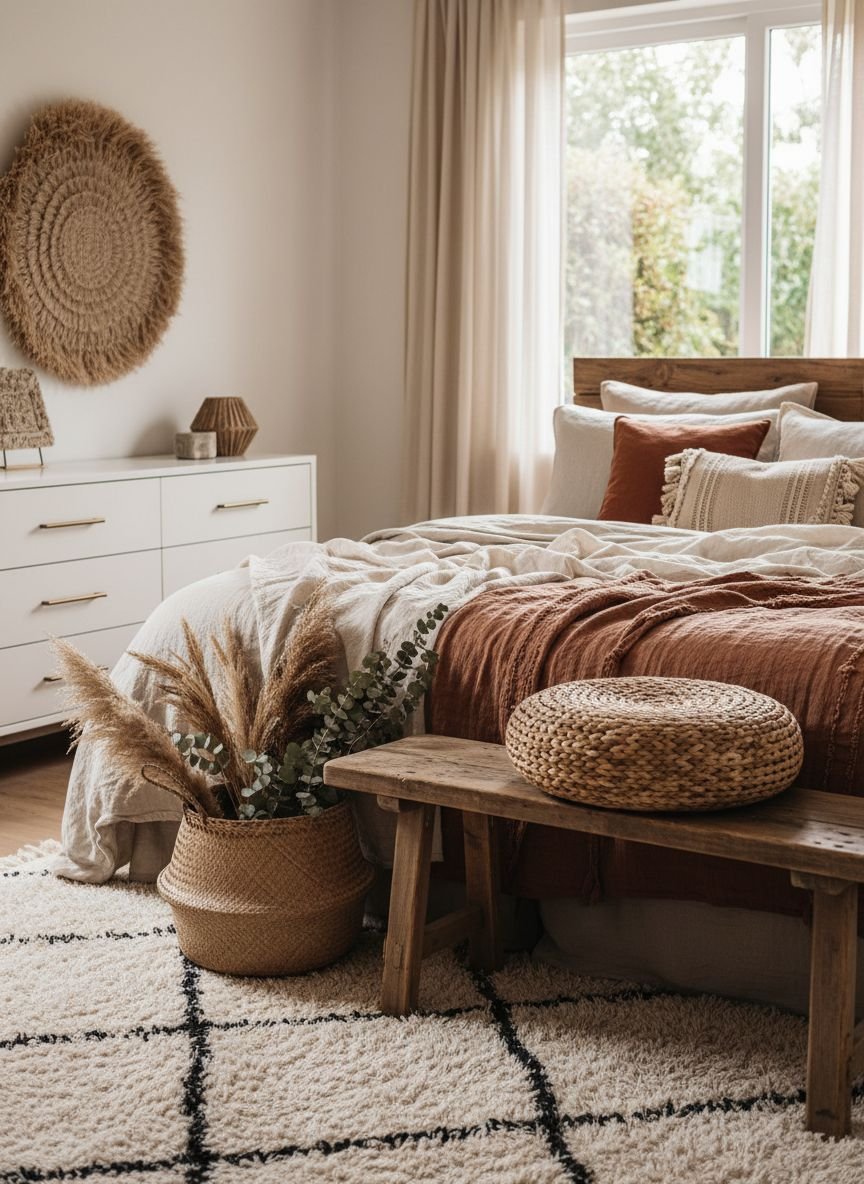 • Texture Over Color: The secret to the boho look lies in layering rough, soft, and woven materials rather than just painting walls.
