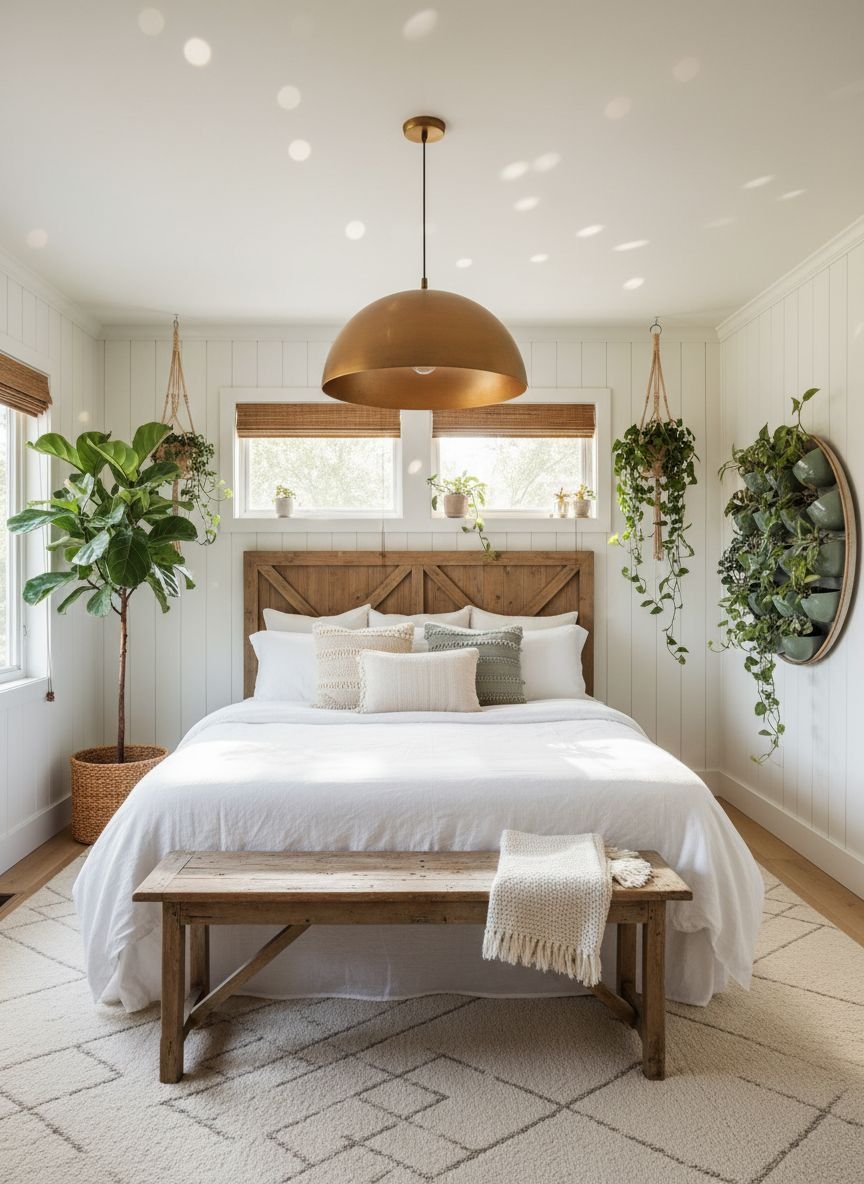 Start with a trailing Pothos on a high shelf or hanging from a macramé planter. The vines draw the eye upward and add a jungle-like feel. Place a large Monstera or Snake Plant in a woven basket on the floor. If you lack a green thumb, stick to varieties that thrive on neglect, like ZZ plants. The goal is to create a connection to the outdoors. The presence of nature reduces stress and improves air quality, helping you sleep better.