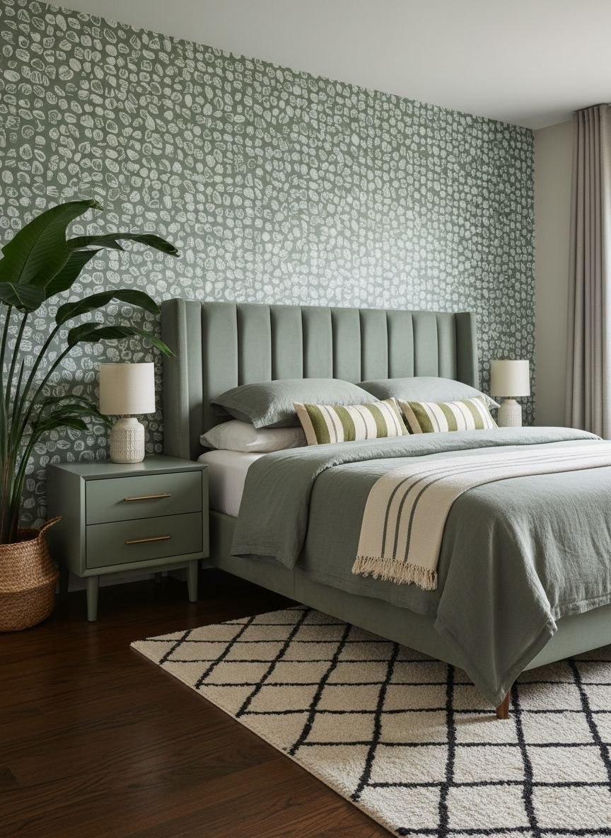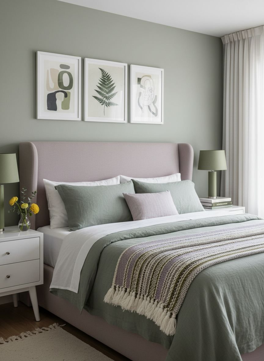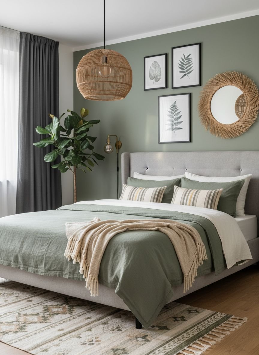 Transform your space with this sage green bedroom featuring gray and green bedroom ideas, perfect for dream bedroom inspiration and new room ideas