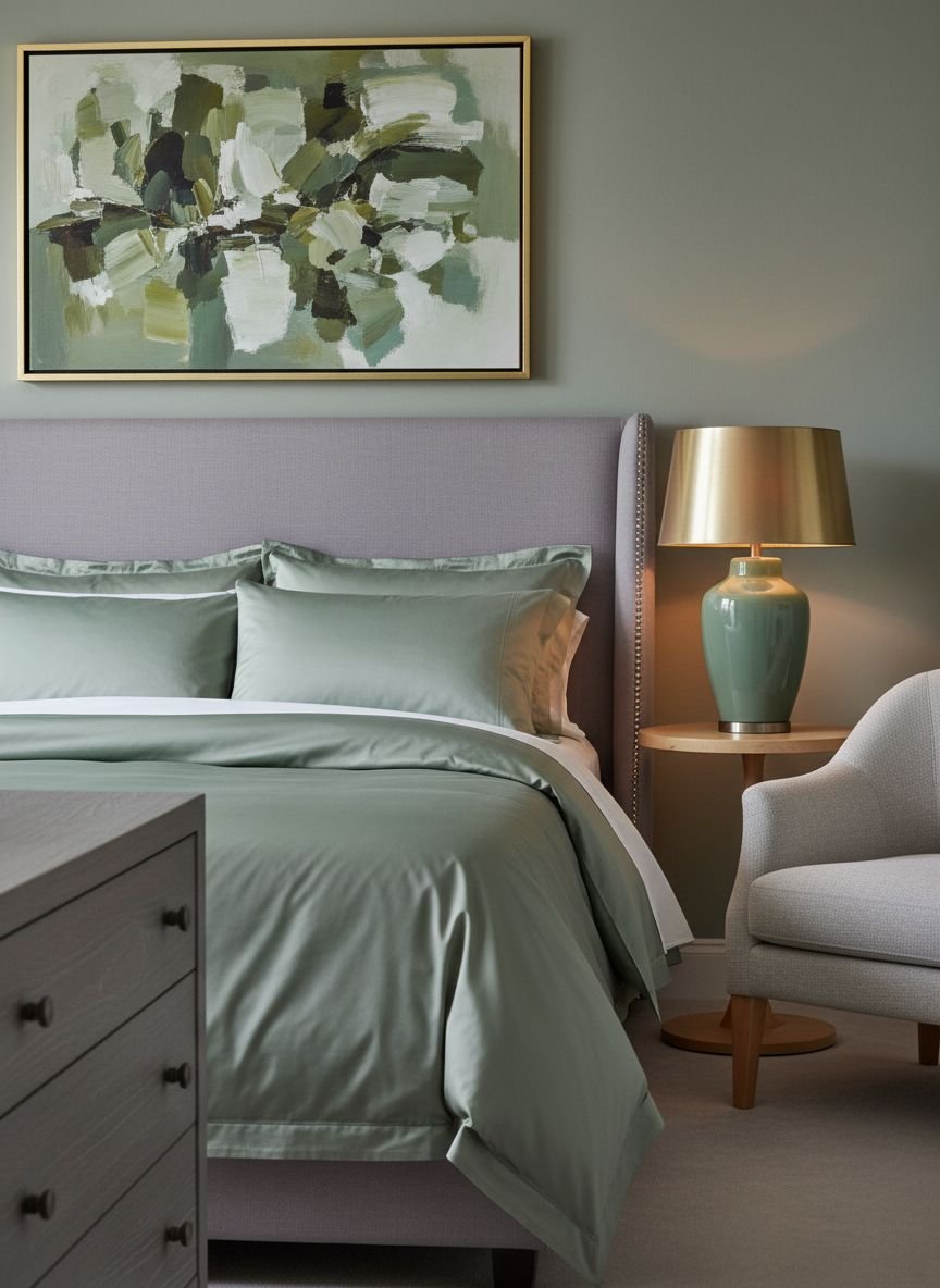 Start with your base sage walls. For your bedding, choose a lighter, minty green. For your accent chair or rug, go for a deep forest green. Introduce gray through hardware (drawer pulls, curtain rods) and frames. The result is a rich, layered look that feels curated over time. It prevents the “flat” look that can happen when you match your bedding perfectly to your wall paint.