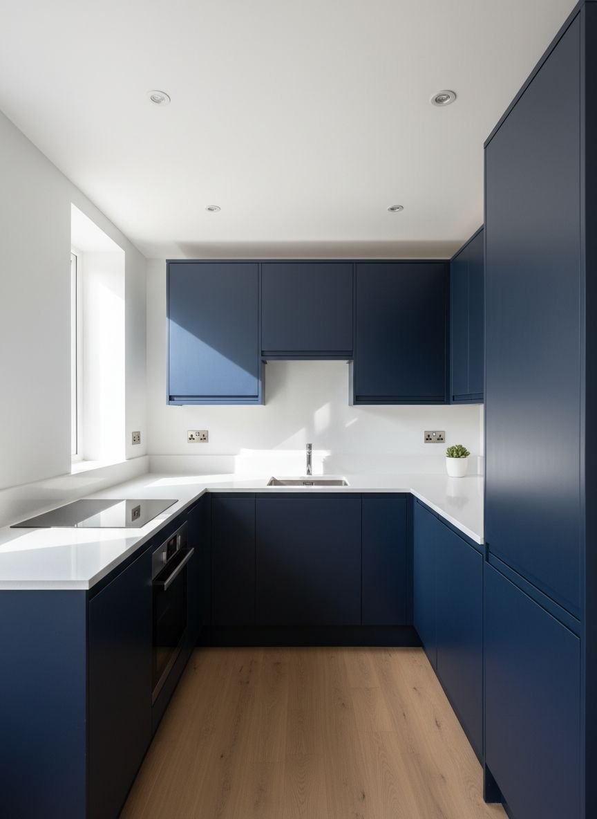 - Handleless Navy Blue Cabinets