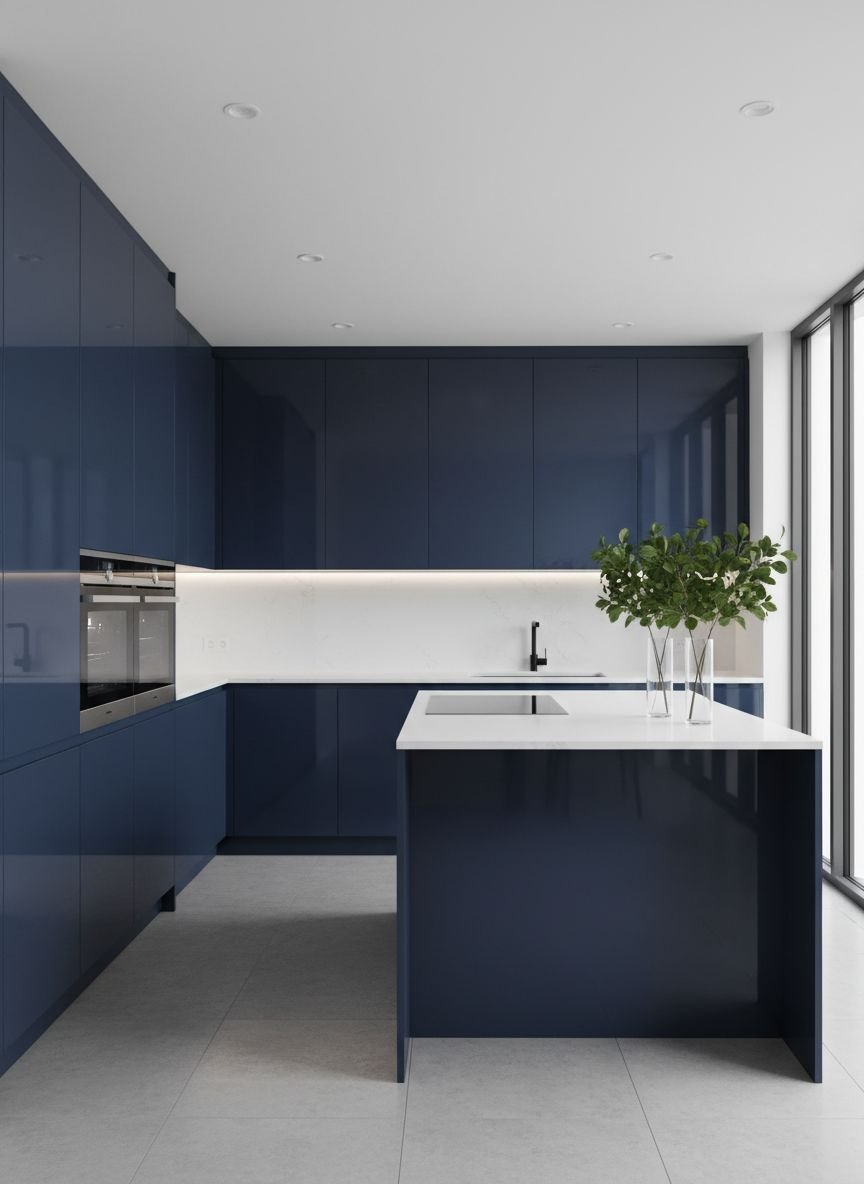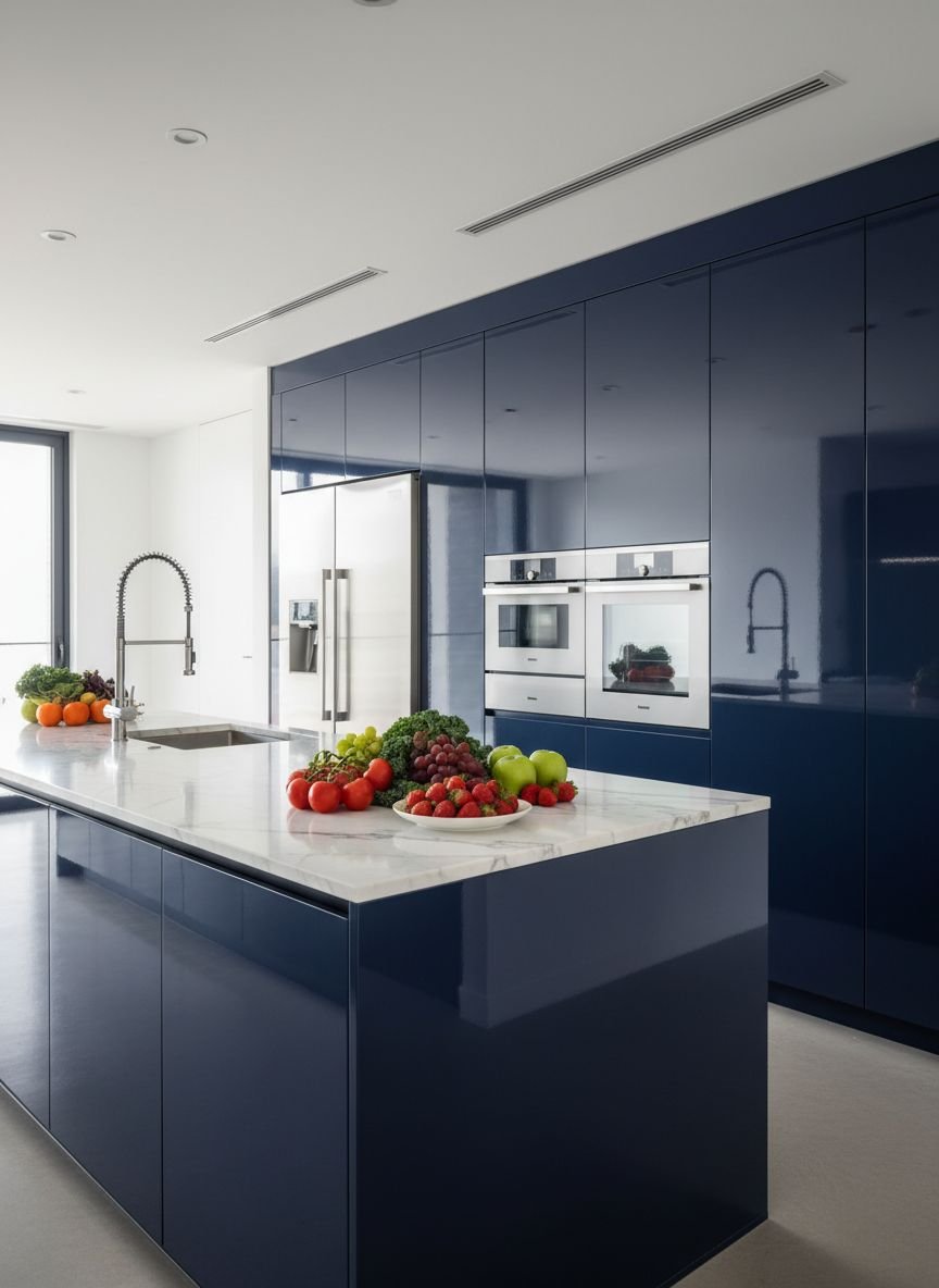 - Glossy Navy Blue Kitchen