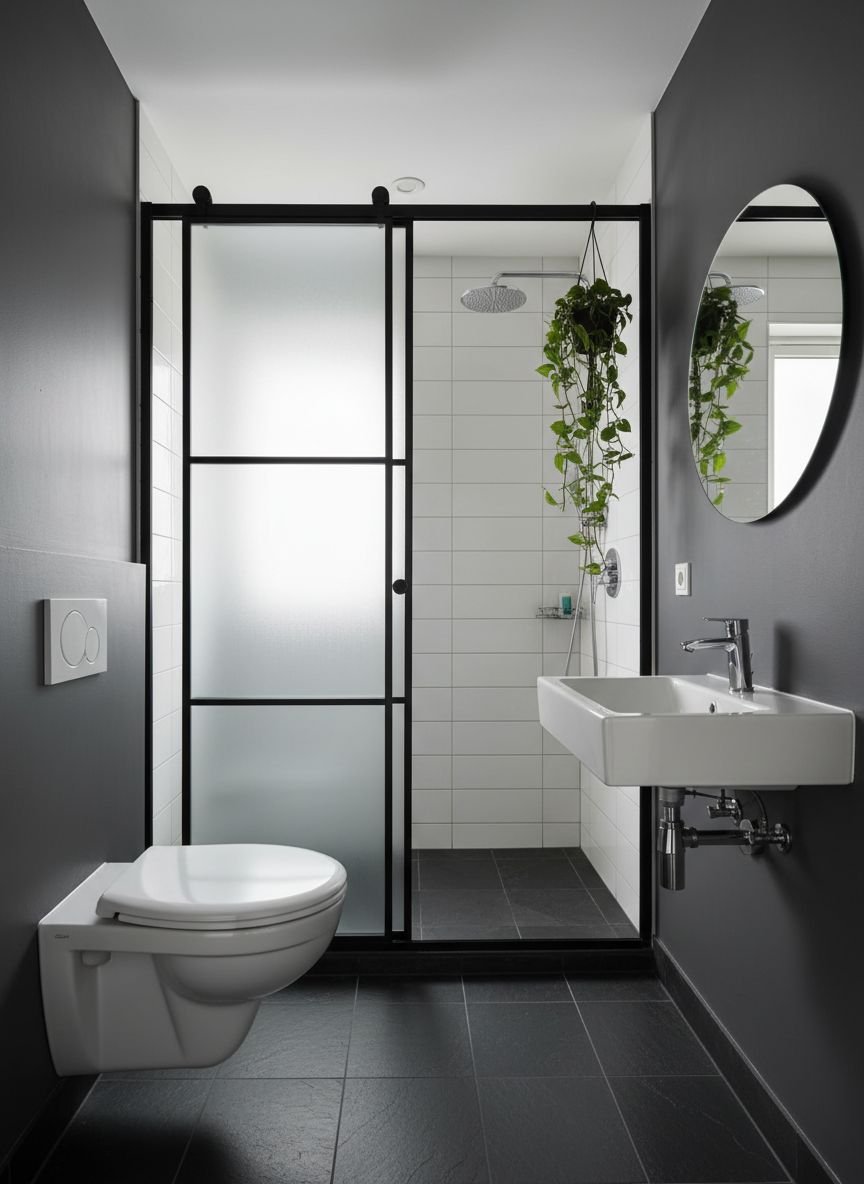 These partitions work well to separate the shower from the vanity. They also work as modesty panels for the toilet. The light passes through to keep the corners bright. The texture of the glass adds a design element. It feels modern and intentional. Translucent dividers maintain the open concept feel while defining zones.
