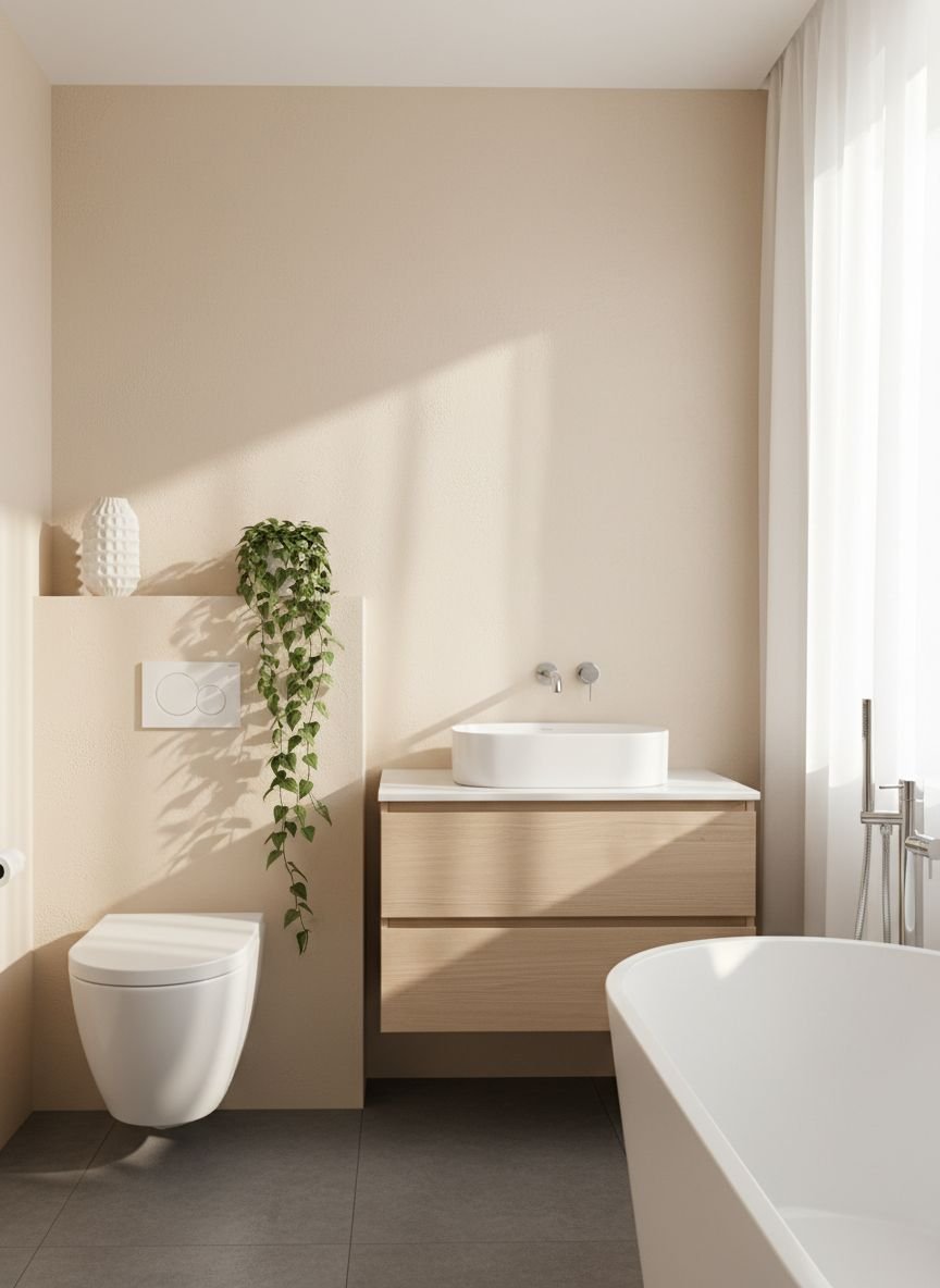 Wall mounted toilets achieve the same effect. The tank is hidden inside the wall and the bowl hovers above the floor. This saves physical space and visual weight. Cleaning becomes significantly easier when you can mop underneath fixtures. The room feels lighter and less grounded. You can use the space under a floating vanity for attractive baskets if you need extra storage.