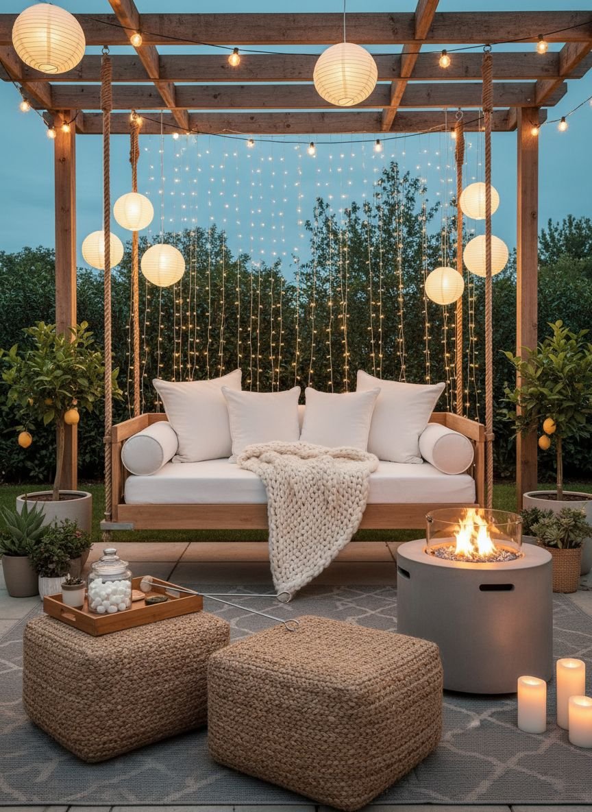 - Lighting is everything: Simple string lights on DIY poles can double the usable hours of your patio.