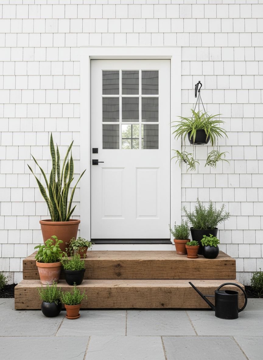 Stain the wood in a rich cedar or redwood tone to warm up the exterior palette. The horizontal lines of the wood steps visually widen the space. You can even integrate planter boxes into the sides of the steps to soften the edges with greenery. This project turns a functional necessity into a design feature.