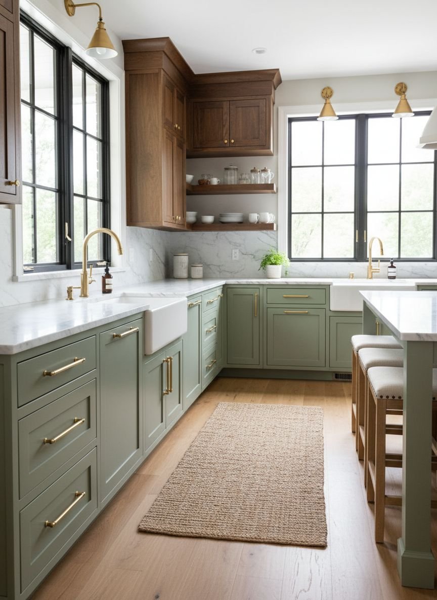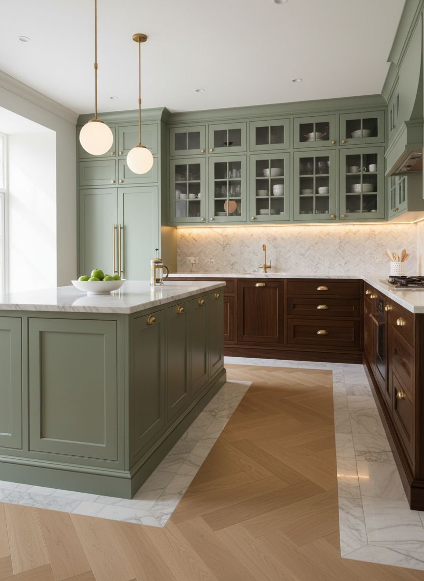- Sage Green Cabinets With Rich Walnut Accents