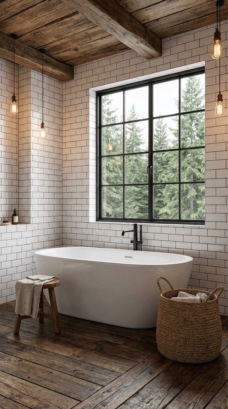 To make this trend feel current, opt for “skinny” subway tiles (finger tiles) or tiles with a handmade, wavy texture rather than the standard flat 3×6 inch block. Pairing vertical white tiles with a contrasting grout (like soft grey or beige) emphasizes the height and adds a graphic element to the walls without being overwhelming.