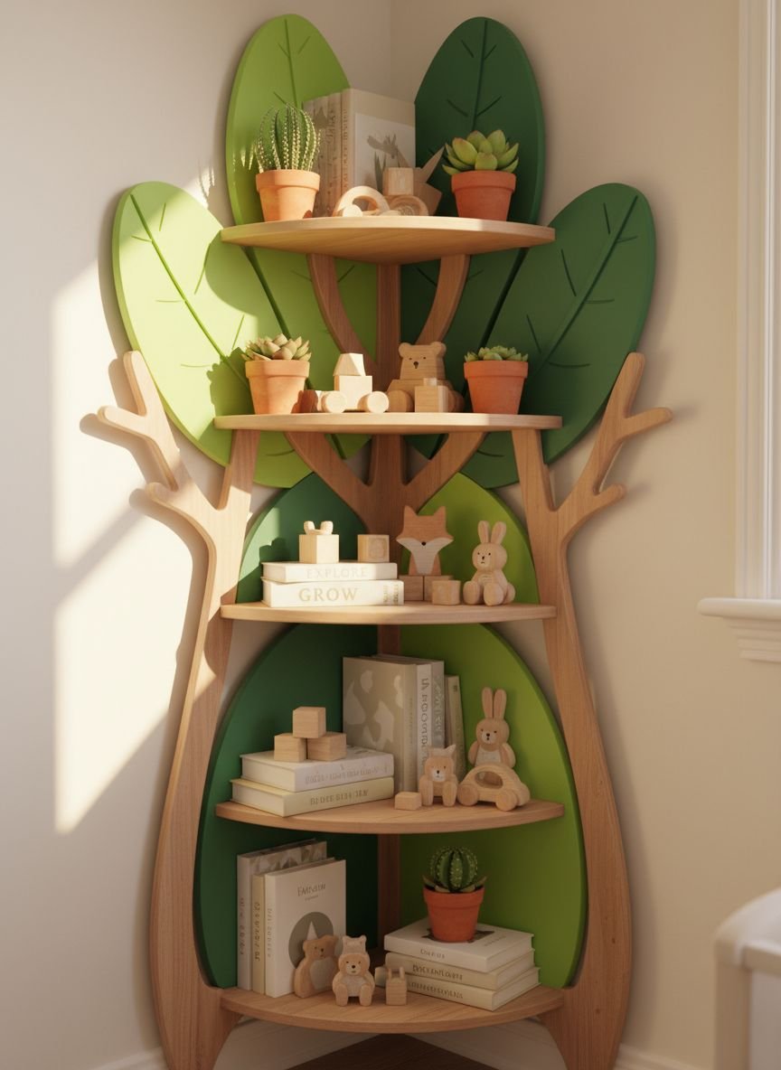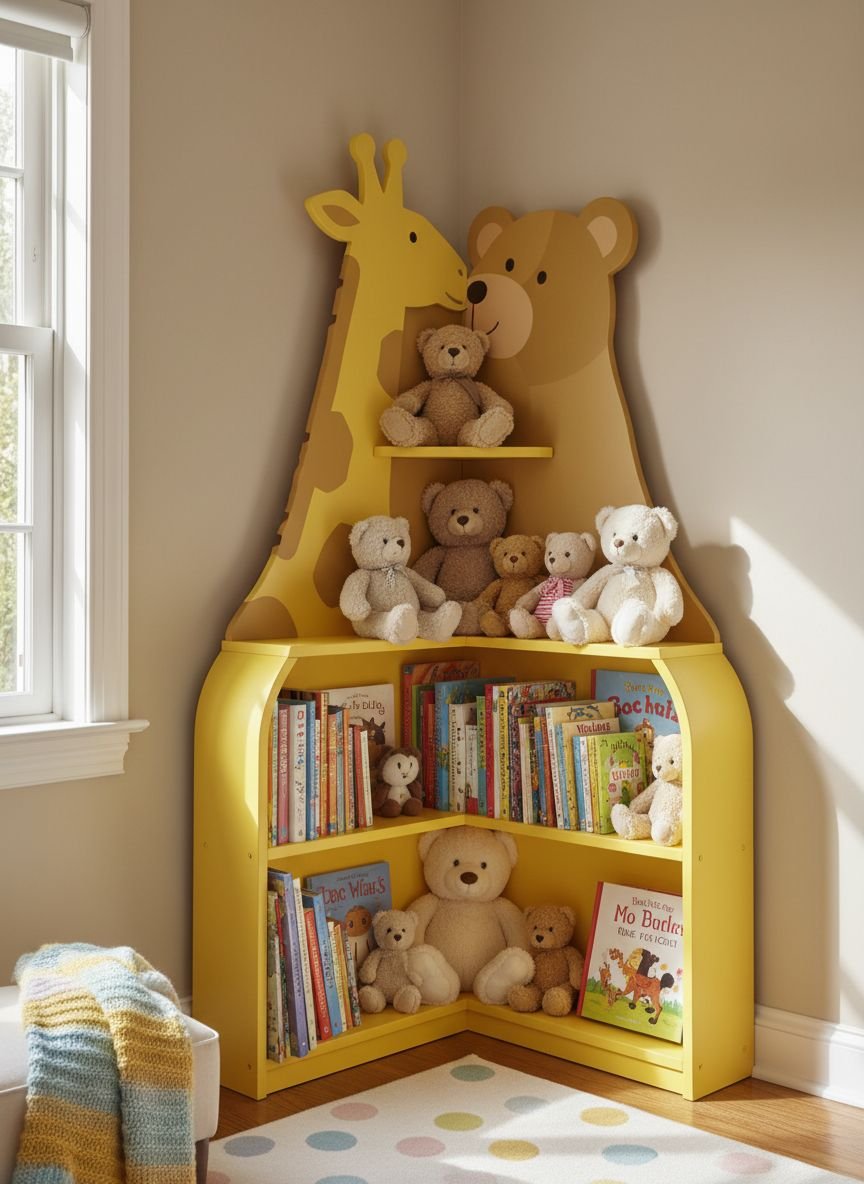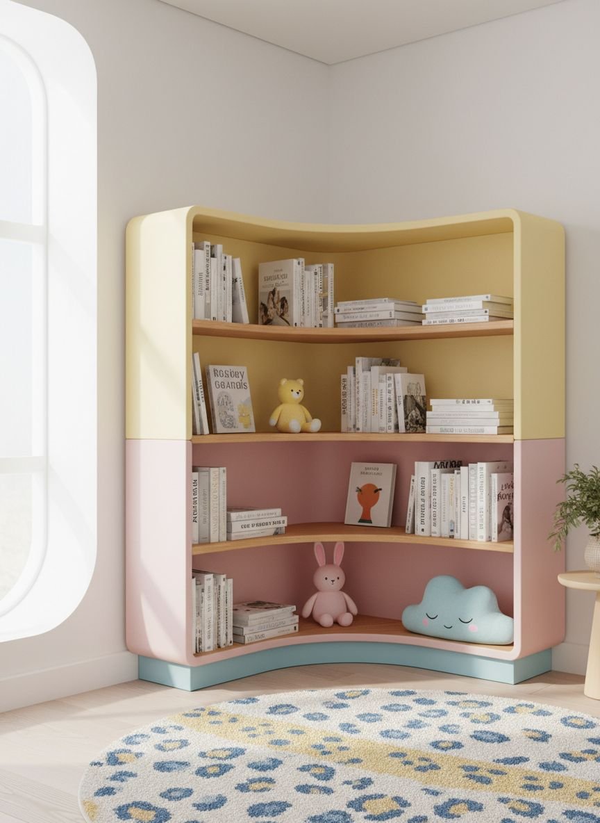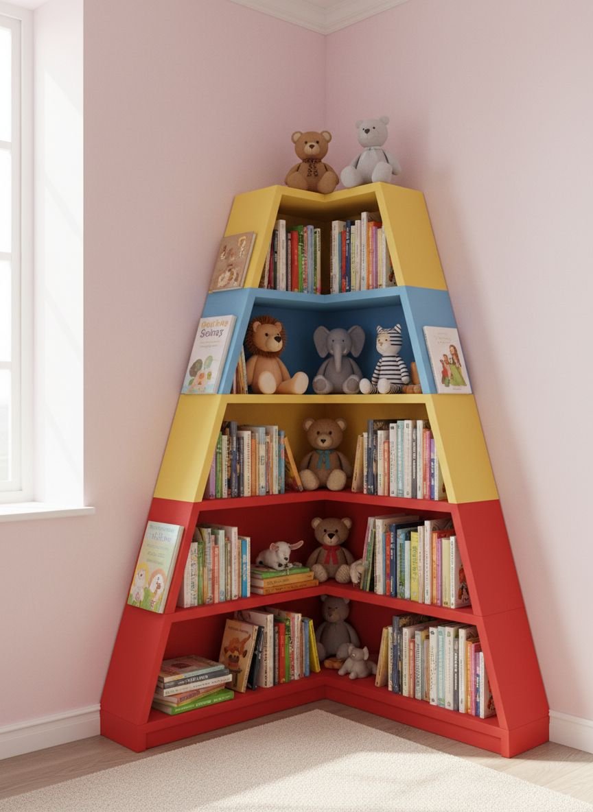 - Vertical Play: Corner shelves aren’t just for storage; they can become interactive play zones for cars, dolls, or art.
