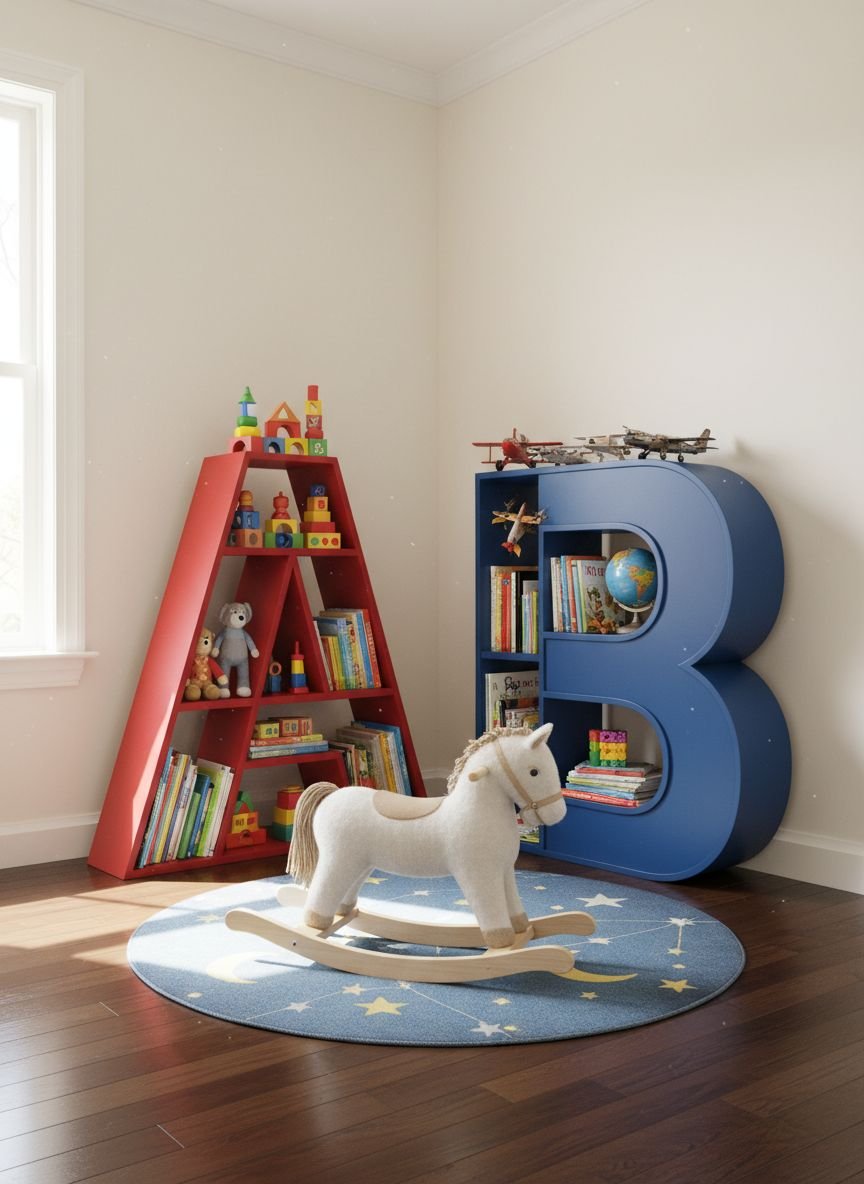 Pro Tip: Use the first letter of your child’s name as a large corner anchor piece, and flank it with smaller, standard shelves for balance.