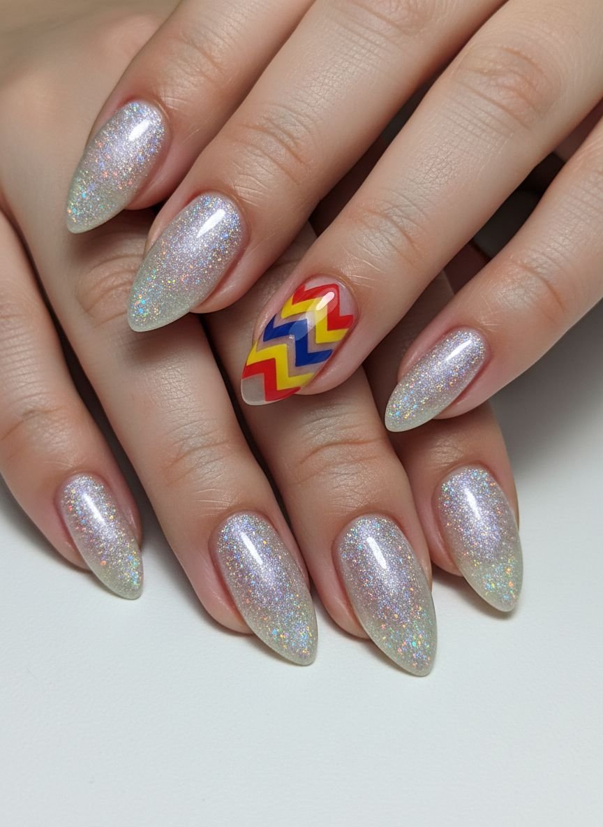 Pro Tip: Use chunky holographic glitter mixed with fine shimmer for maximum light reflection.