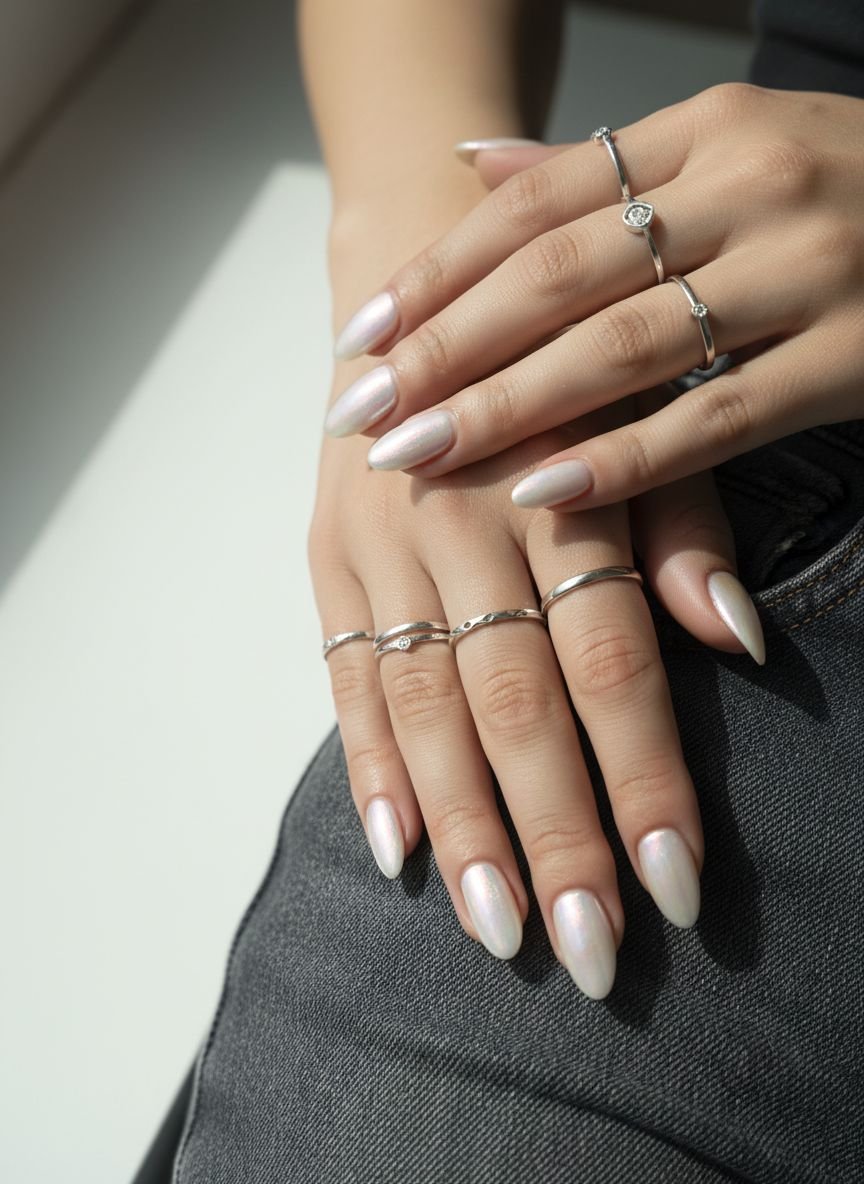 This look requires a no-wipe gel top coat and chrome powder. First, apply your base color and cure it. Apply the no-wipe top coat and cure it for about 30 seconds (it needs to be warm but fully cured). Rub the chrome powder onto the nail using a silicone tool or an eyeshadow applicator. Buff it until you see your reflection. The friction creates the mirror finish. Dust off the excess powder and seal it with another layer of top coat. Cap the free edge securely, as chrome tends to chip at the tips first.