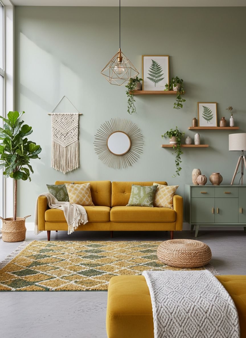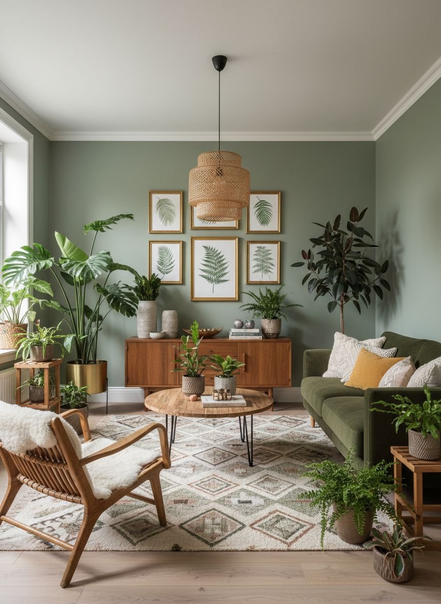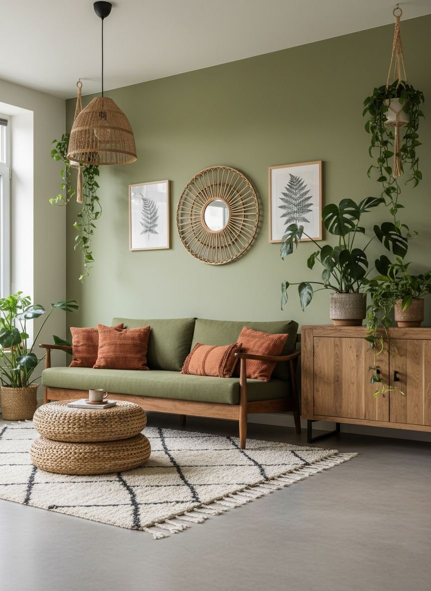 - Boho Sage Green Living Room: Relaxed Vibe