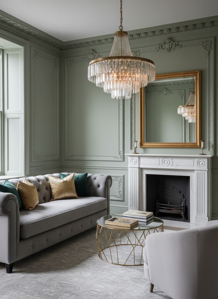 Pro Tip: If you have dark wood furniture (walnut or teak), choose a slightly lighter shade of sage green to avoid darkening the room.