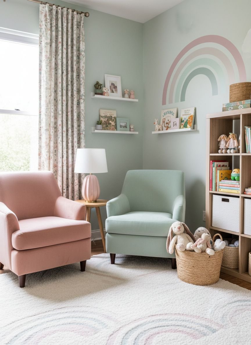 Pro Tip: Introduce a dark gray or anthracite element into the room to temper the sweetness and balance the “candy-like” aspect of the pink/green mix.