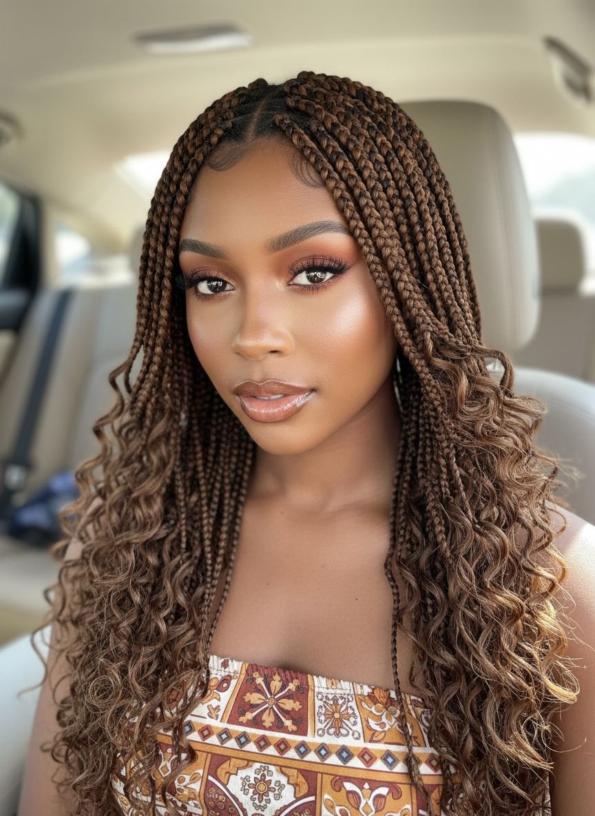 The “Boho” or Bohemian braid style has exploded in popularity due to its ethereal, undone vibe. This look combines traditional box braids or knotless braids with loose, curly strands of human hair fed throughout the length of the braid. The result is a voluminous, textured masterpiece that mimics the look of loose hair while offering the protection of braids. It captures the essence of “effortless beauty” perfectly.