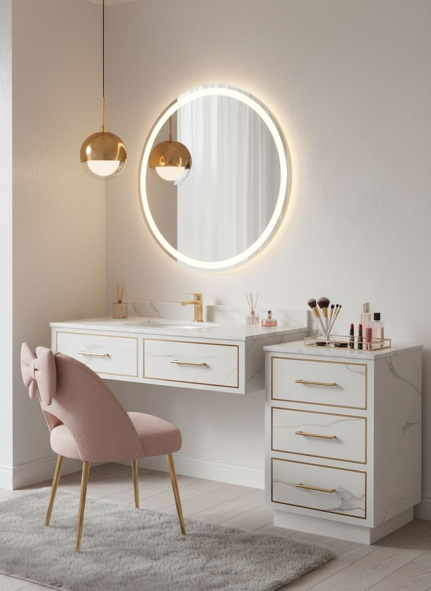 - Elegance with a Touch of Gold: A Chic Bedroom Vanity