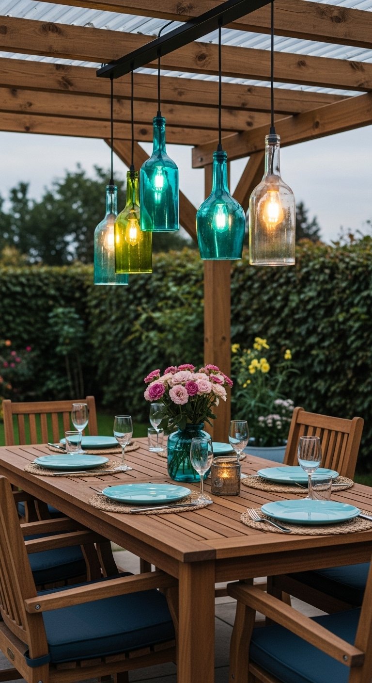 For a whimsical, colorful, and eco-friendly touch, hanging bottle lights are a creative winner. This involves using recycled wine or spirit bottles as shades for lights. You can cut the bottoms off and hang them over pendant bulbs, or simply stuff them with string lights and hang them by the neck.