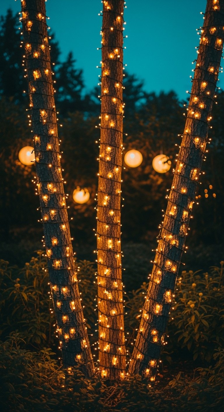 A popular trend is to wrap the trunks of trees or the pillars of a pergola. Because the wire is often copper or green, it disappears during the day, leaving only the light visible at night. This technique draws the eye upward, emphasizing the height of your trees and making your yard feel larger. It is an excellent strategy for small backyard lighting, where floor space is at a premium and you need to use vertical elements to create atmosphere.