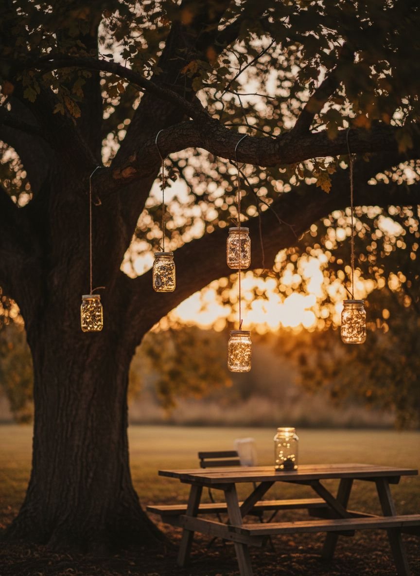 Pro Tip: For a “firefly” effect, stuff the jars with copper wire micro-LED string lights (battery powered) instead of a single candle. The multiple points of light create a magical, sparkling container.