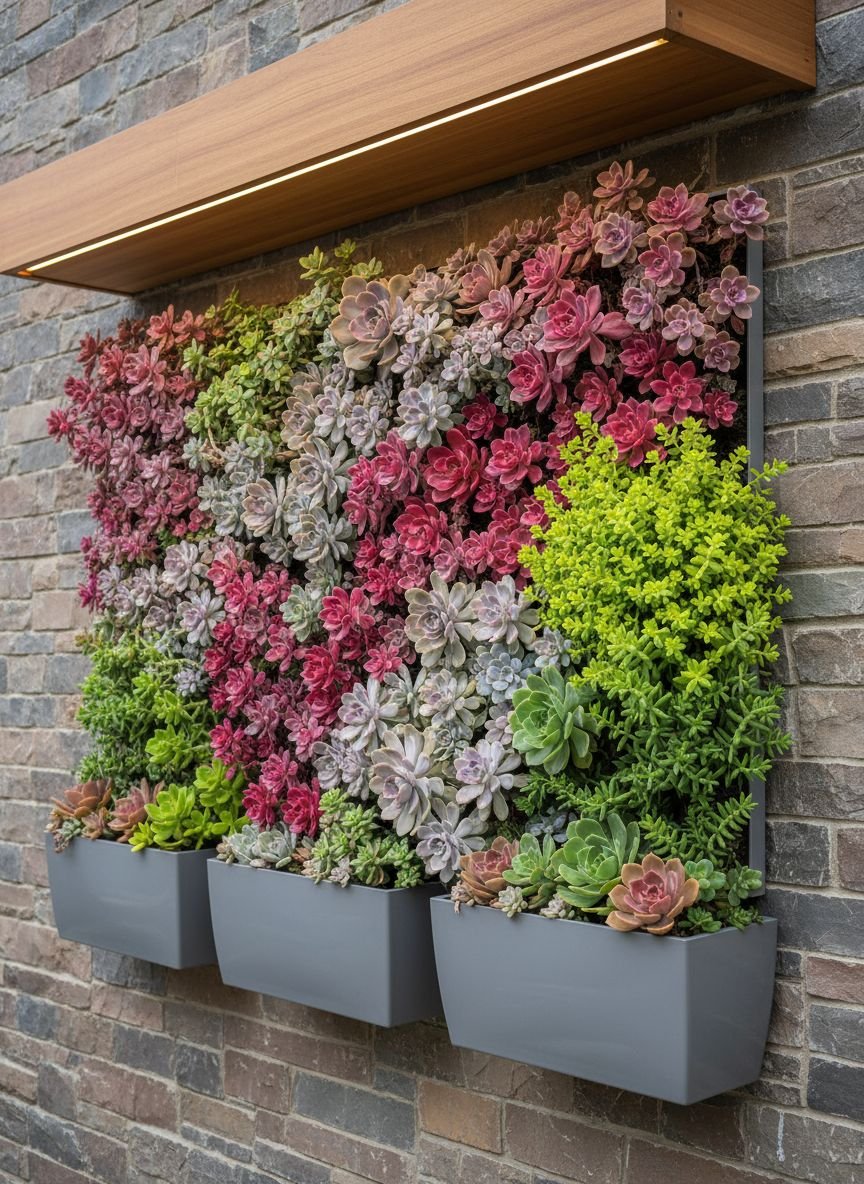 Vertical succulent wall art for a vibrant, space-saving green statement