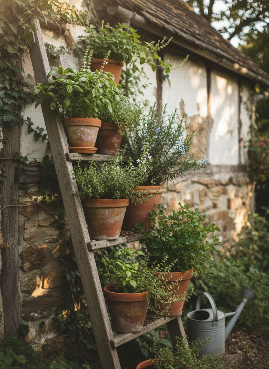 - Rustic Vertical Herb Garden with Ladder Frame