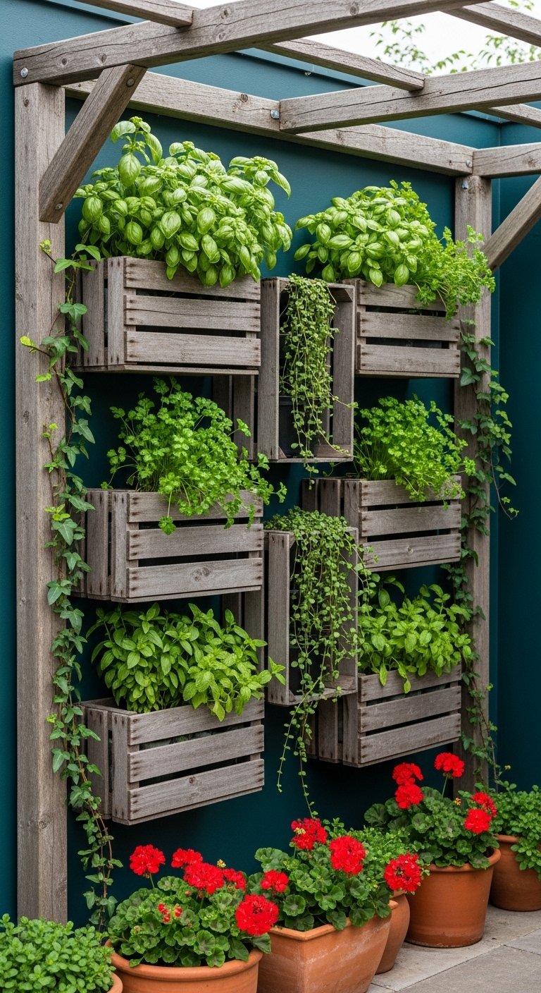 Vertical Garden with Wooden Crates