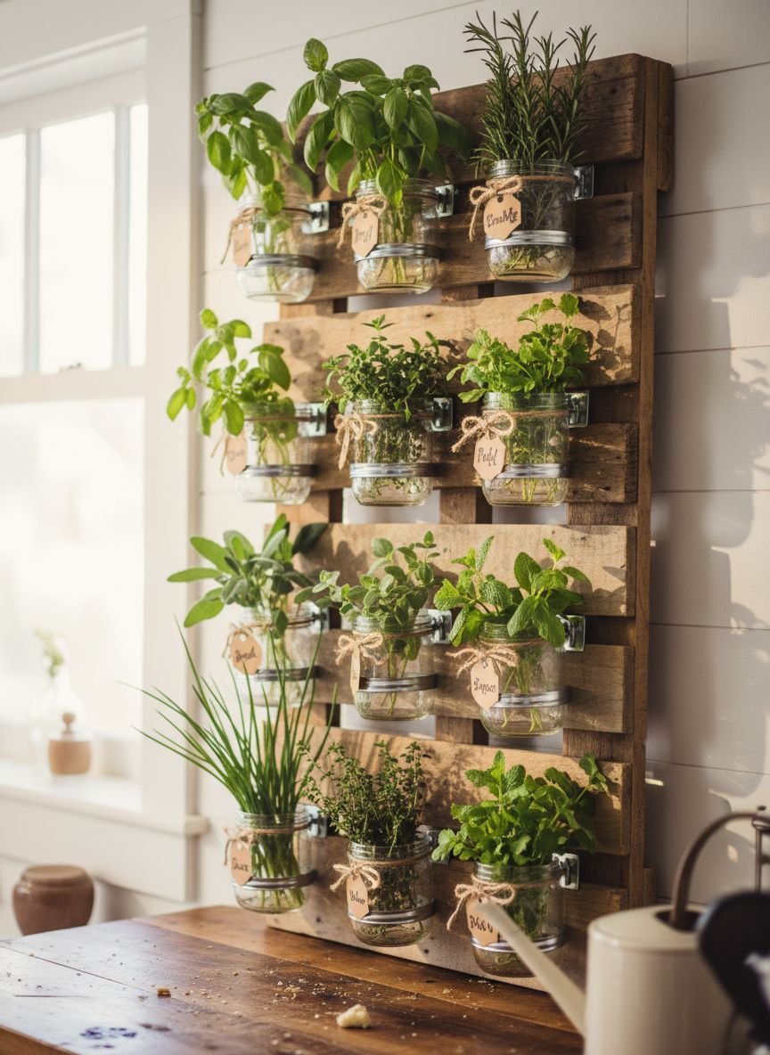 - Indoor Vertical Herb Garden with Mason Jars