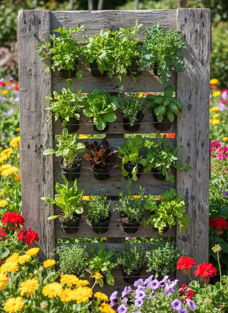 - Vertical Herb Garden with Recycled Materials