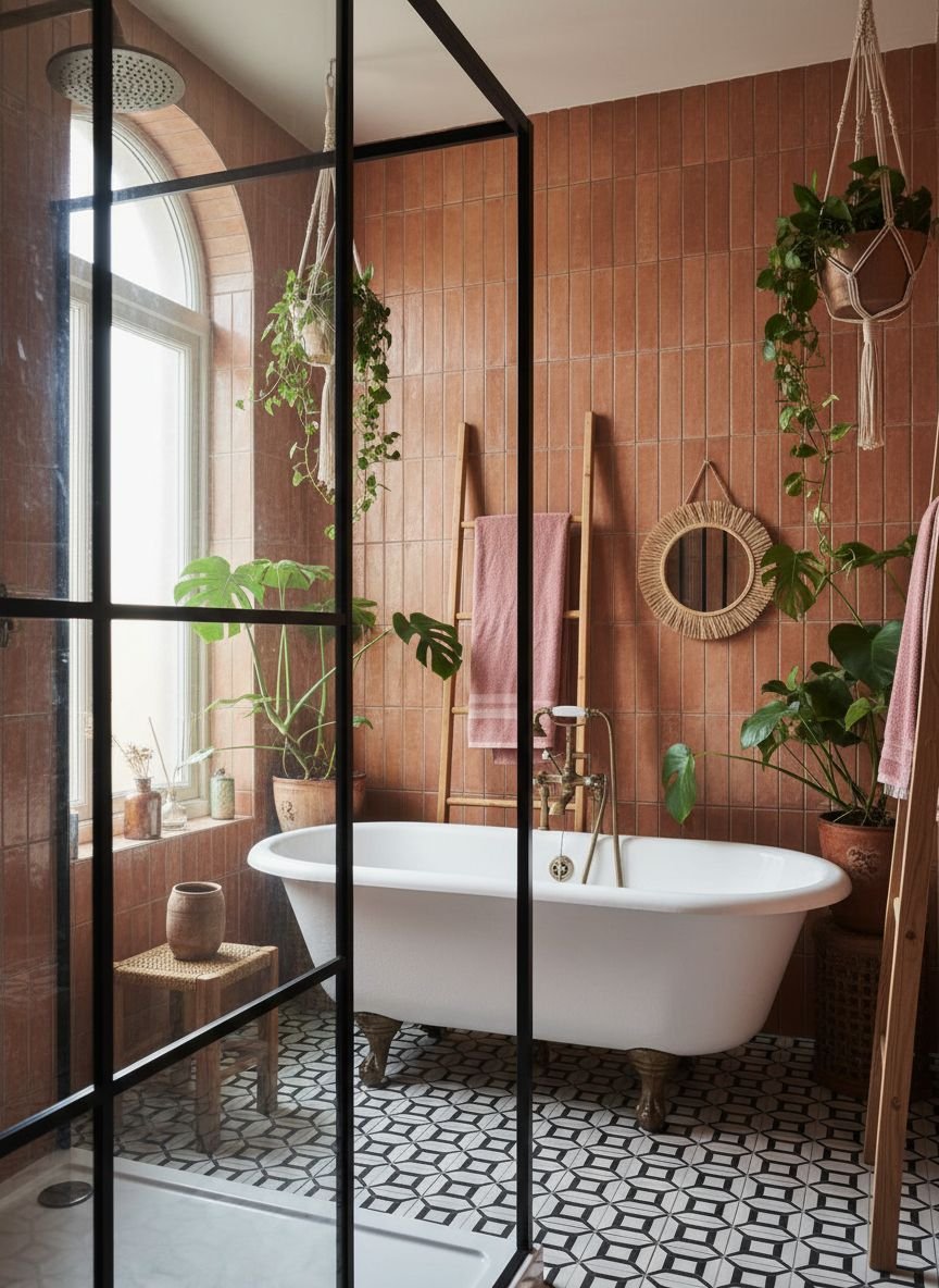 - Warm Terracotta Tiled Bathroom
