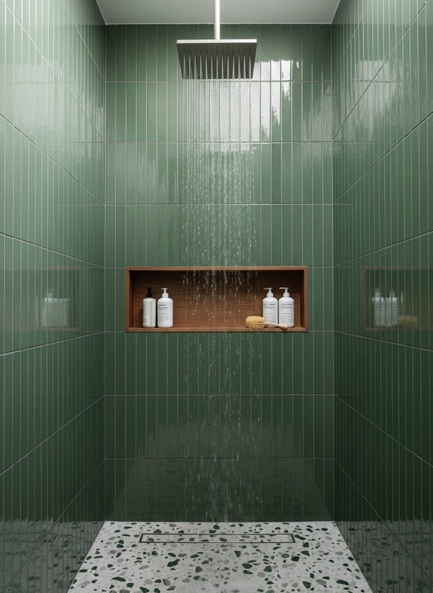 - Emerald Green Vertical Tile Shower