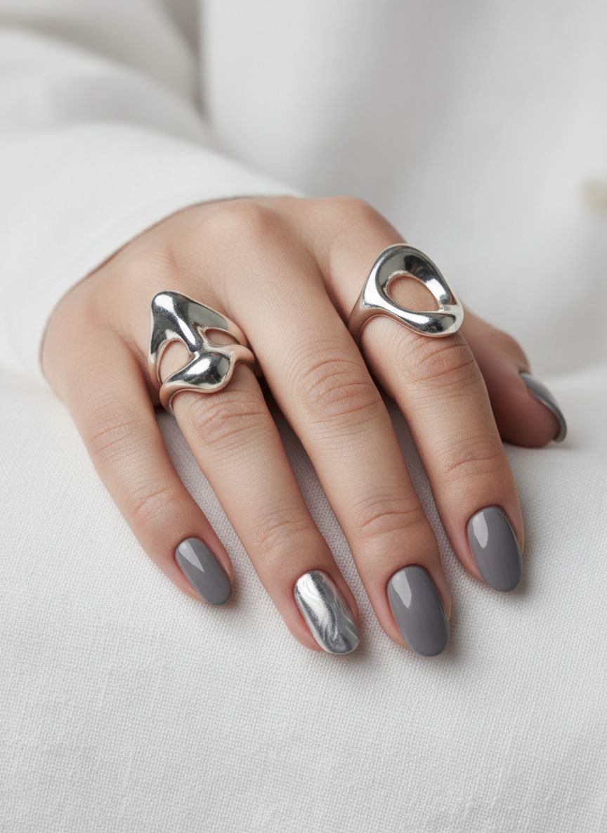 - Grey Nails & Metallic Accents