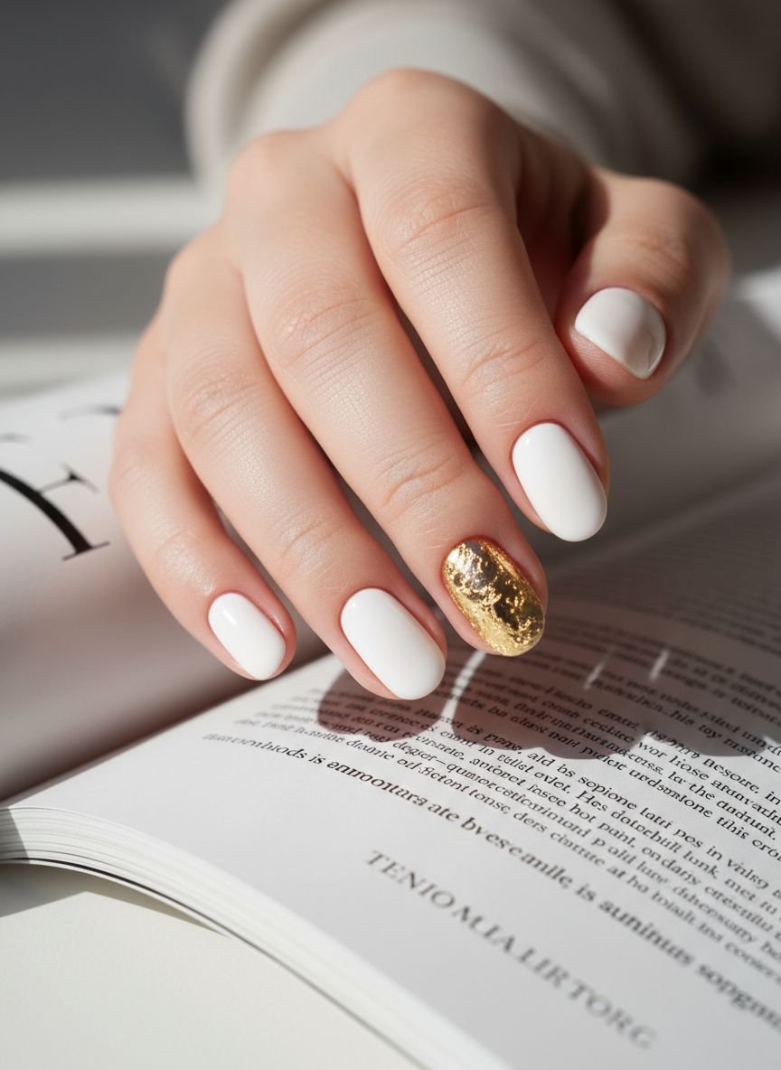 - Milky White Nails + Pops of Gold