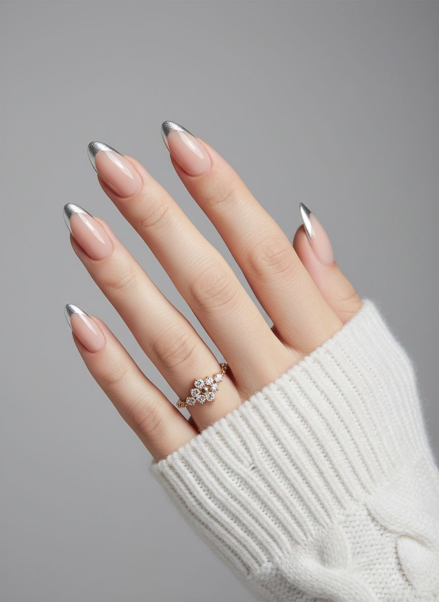 This look is particularly stunning on short, natural nails. The silver tip defines the shape without overwhelming a small nail bed. It is effortless chic at its finest.