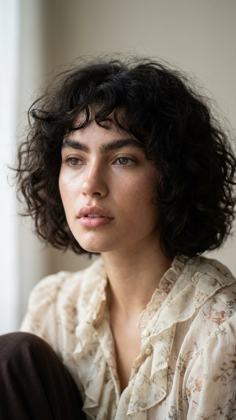 For those with Type 3 curls, the Curly Shag is a liberator. By cutting layers that follow the curl pattern, this style prevents the dreaded pyramid shape. The shorter layers on top release weight, allowing curls to spring up and form tight ringlets. Bangs are often included to frame the eyes. This cut thrives on moisture and air-drying. You apply your curl cream in the shower and don’t touch it again until it’s dry.