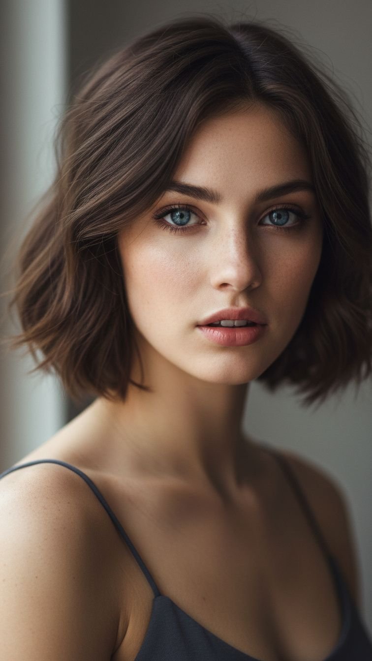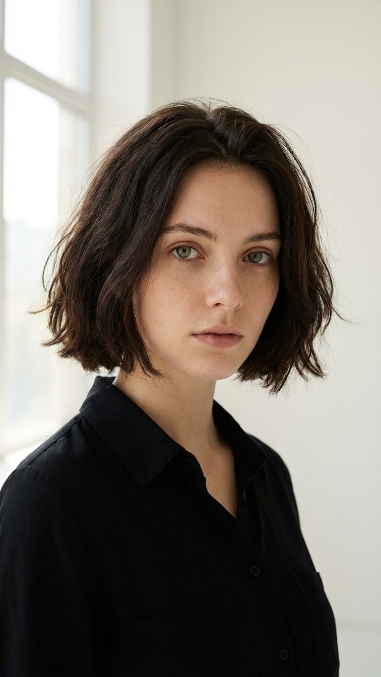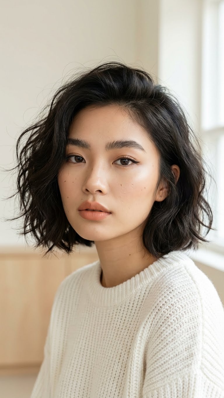 The “Ripped Bob” stands as the defining short cut for 2026. Unlike the precision bobs of previous years, this style features ends that look softly torn or textured. The stylist cuts vertically into the ends to remove weight and create a shattered edge. This technique allows the hair to settle naturally without the “triangle effect” common in blunt cuts. It works exceptionally well for thick hair that needs movement. You wash, scrunch in a little mousse, and let it dry. The beauty lies in its imperfection.